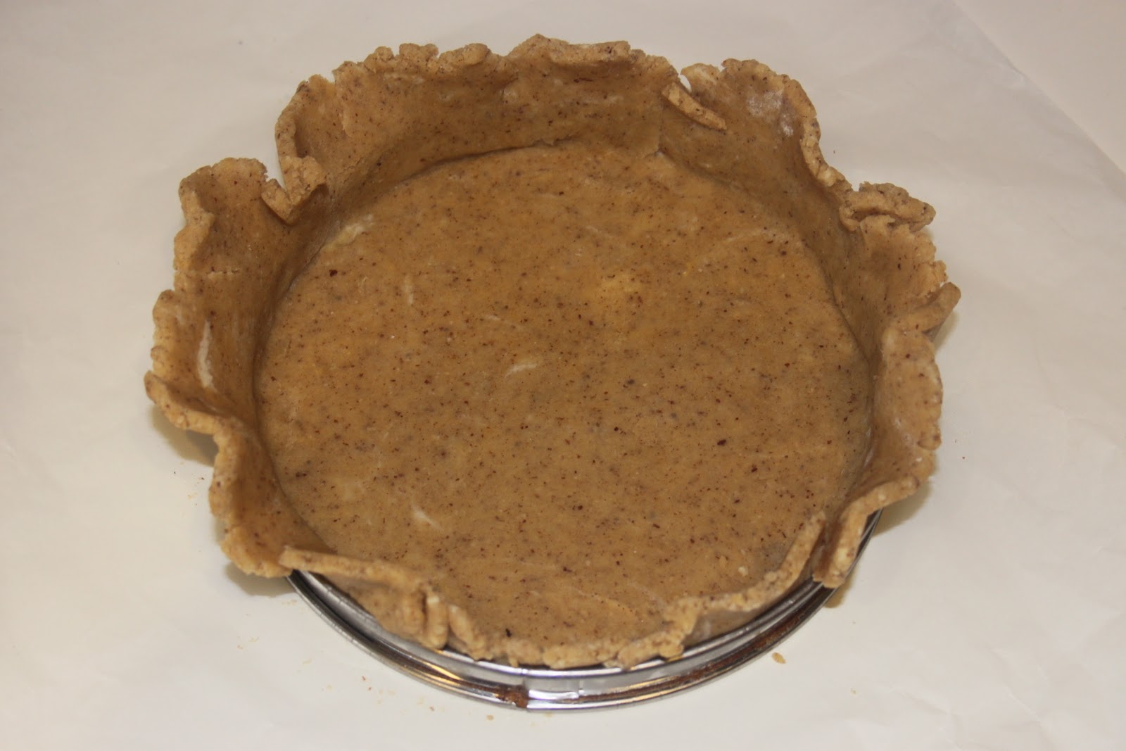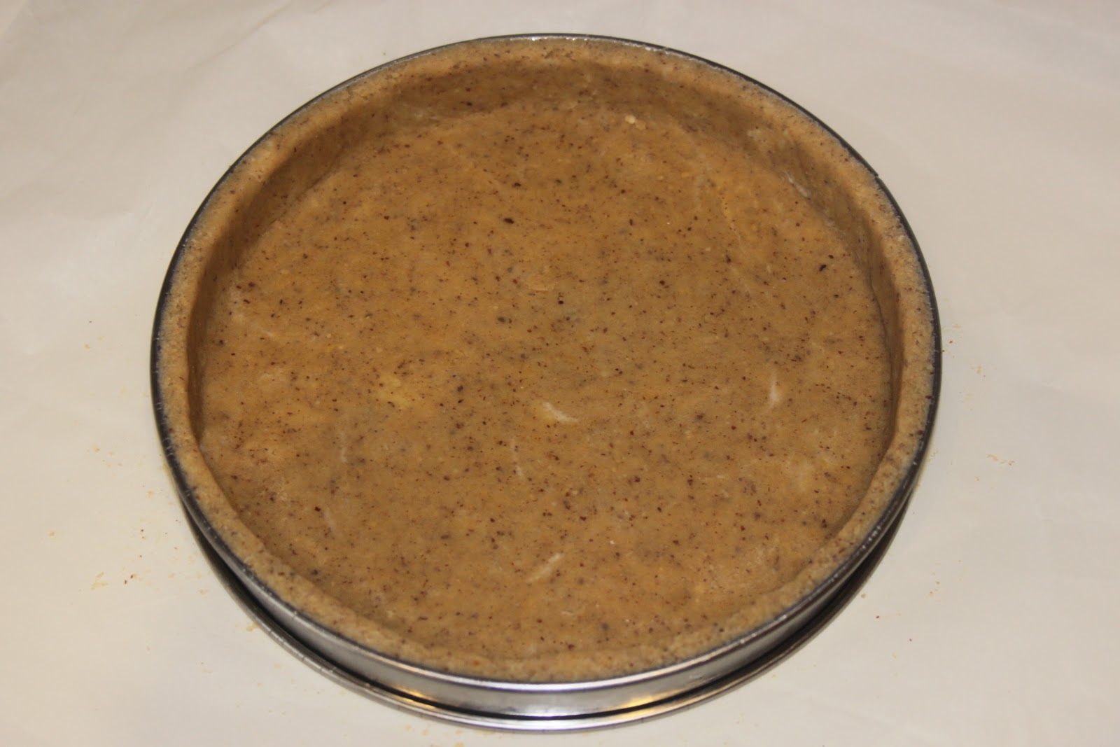 Étaler sur une feuille de papier sulfurisé sur une épaisseur de 2mm. La pâte ne gonflera que très peu, car il n’y a pas de blancs et juste un soupçon de levure chimique.