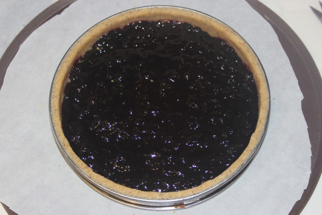 - Verser la confiture choisie sur le fond de pâte. Il vaut mieux mettre une confiture « maison » allégée en sucre, ou bien une du commerce light. Avec une confiture normale, le résultat risque d’être trop sucré.