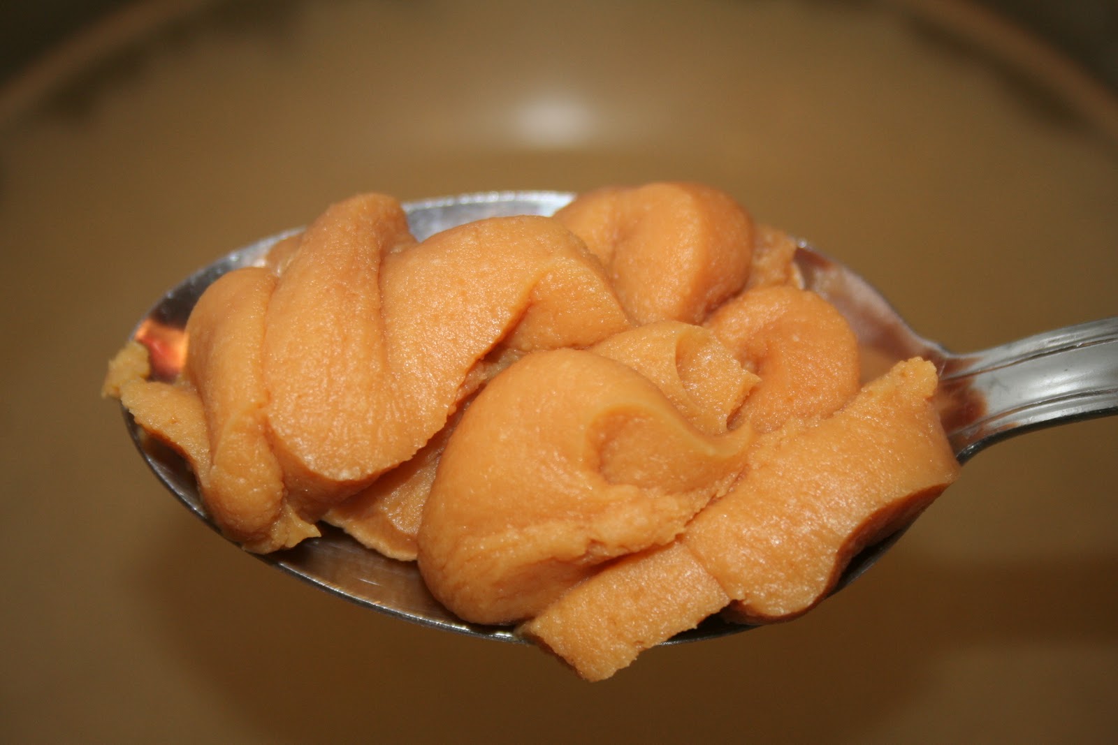 - Voici l’un des paquets qui existent dans les supermarchés japonais (Hi-Mart rue Sainte Anne). Il s’agit tout simplement de pâte de soja fermenté.
