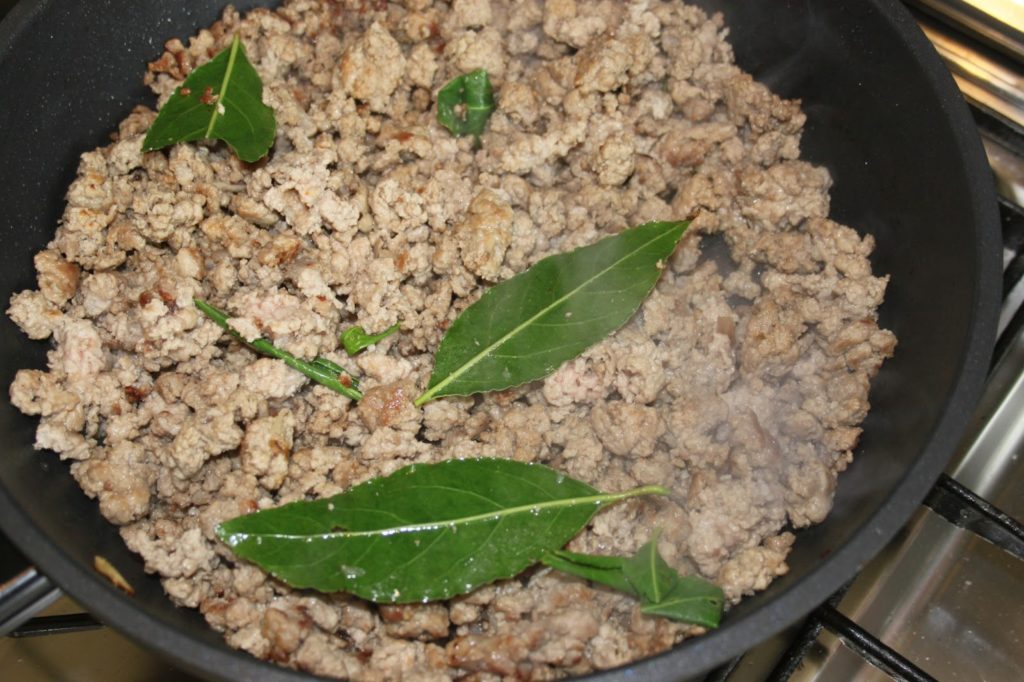 - Bien mélanger avec une cuiller en bois pour cuire la viande de toute part.