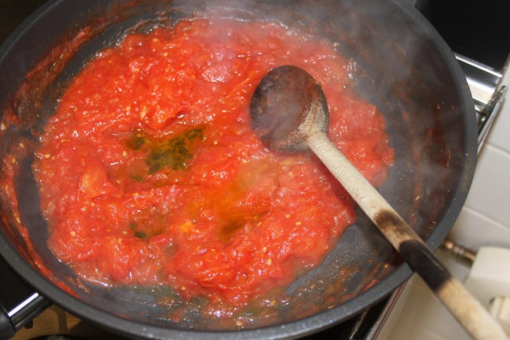 - Quand la sauce tomate est bien épaisse, mettre de côté.