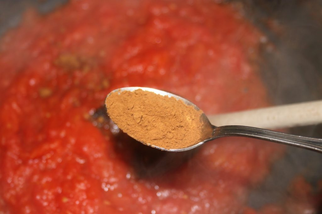 - Ajouter également une petite cuillerée à café de cannelle en poudre et une pincée de piment en poudre fort.