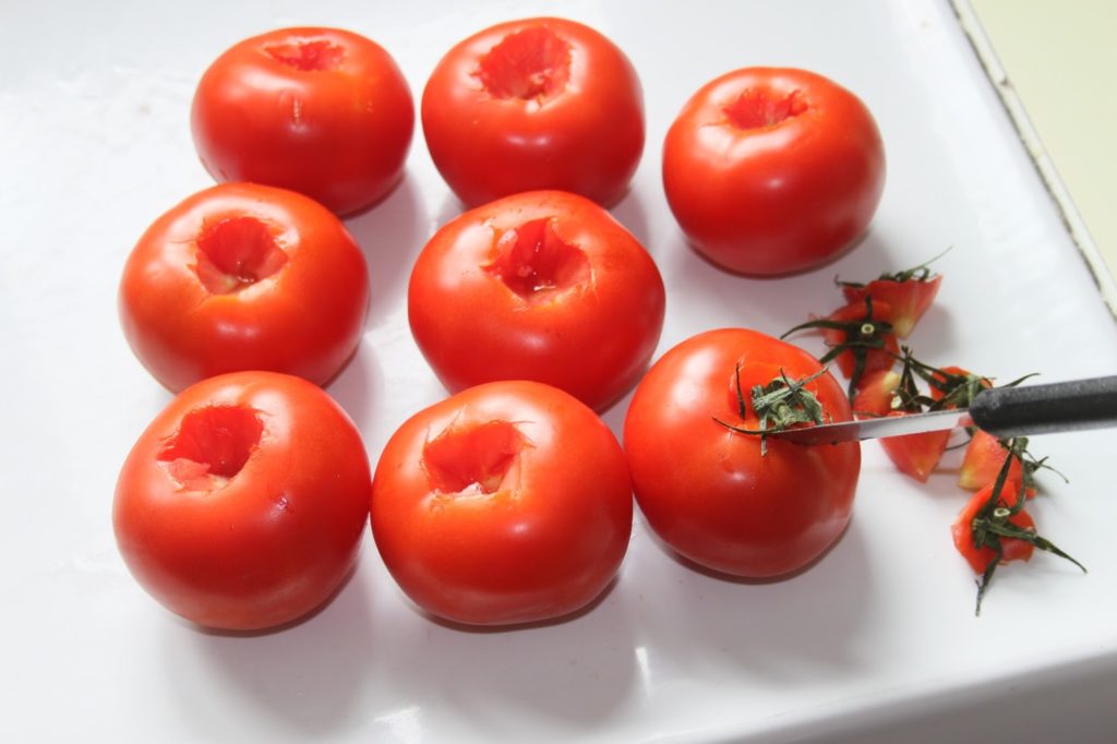 - Commencer par enlever la queue des tomates.