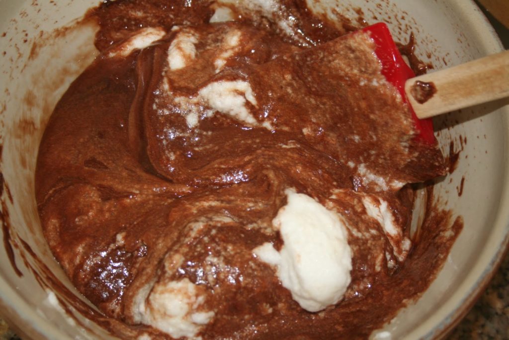 - Ajouter les blancs en neige ferme au mélange chocolaté. Mélanger avec une spatule en soulevant bien la pâte pour ne pas faire retomber les blancs!