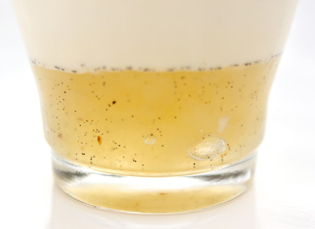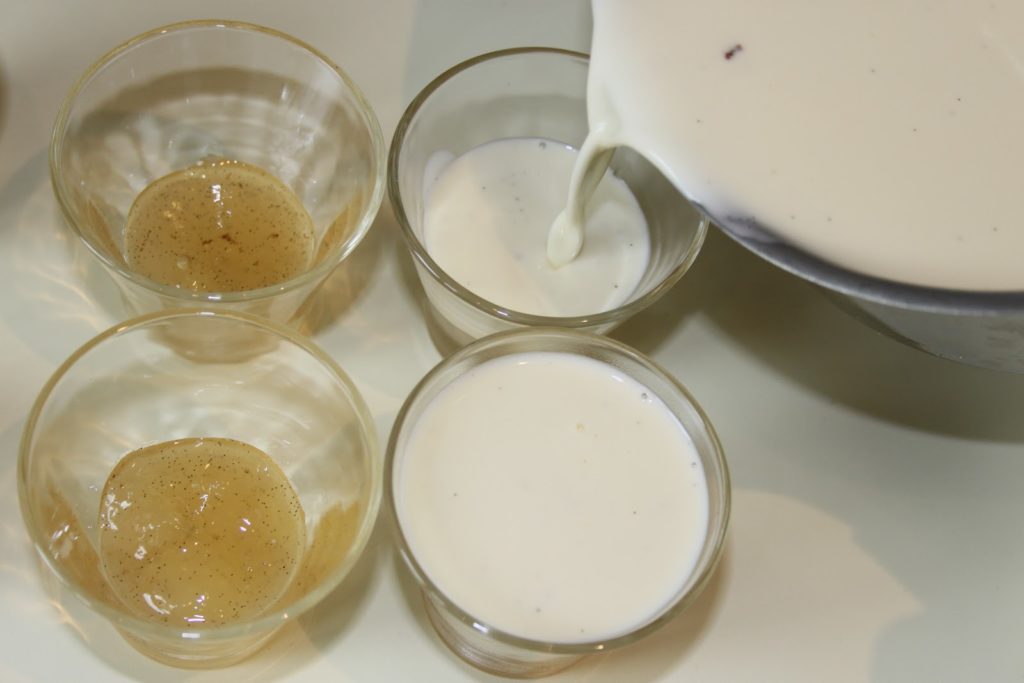 Recette de la panna cotta aux poires vanillées pour 8 petits verres: