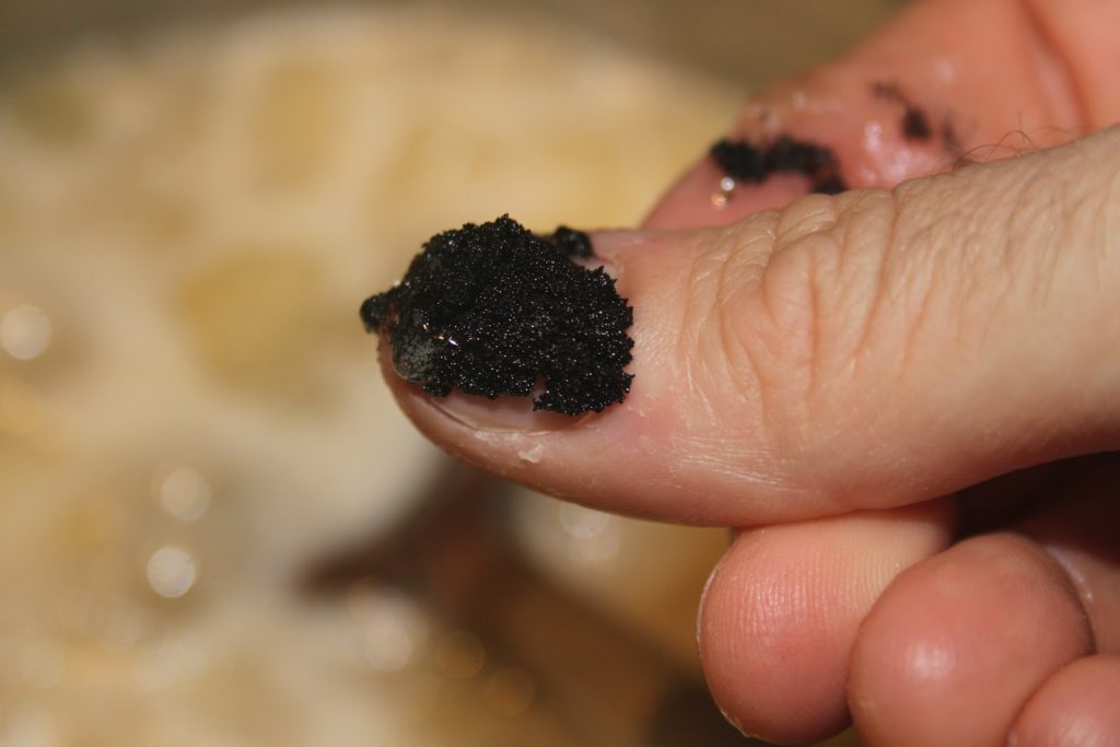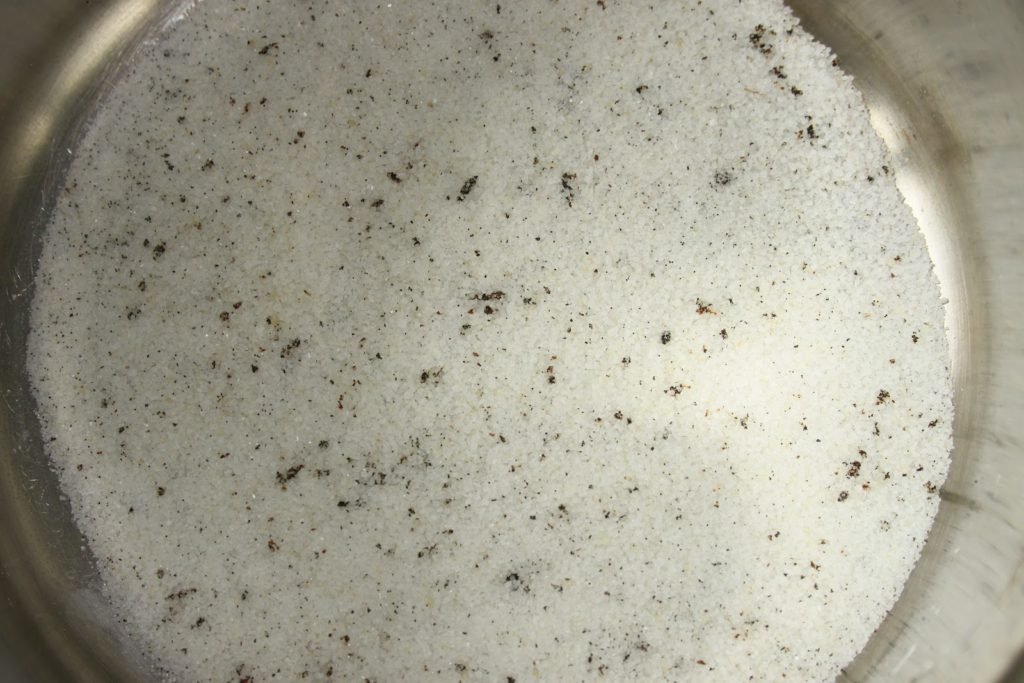 - Gratter l’intérieur de la gousse de vanille.