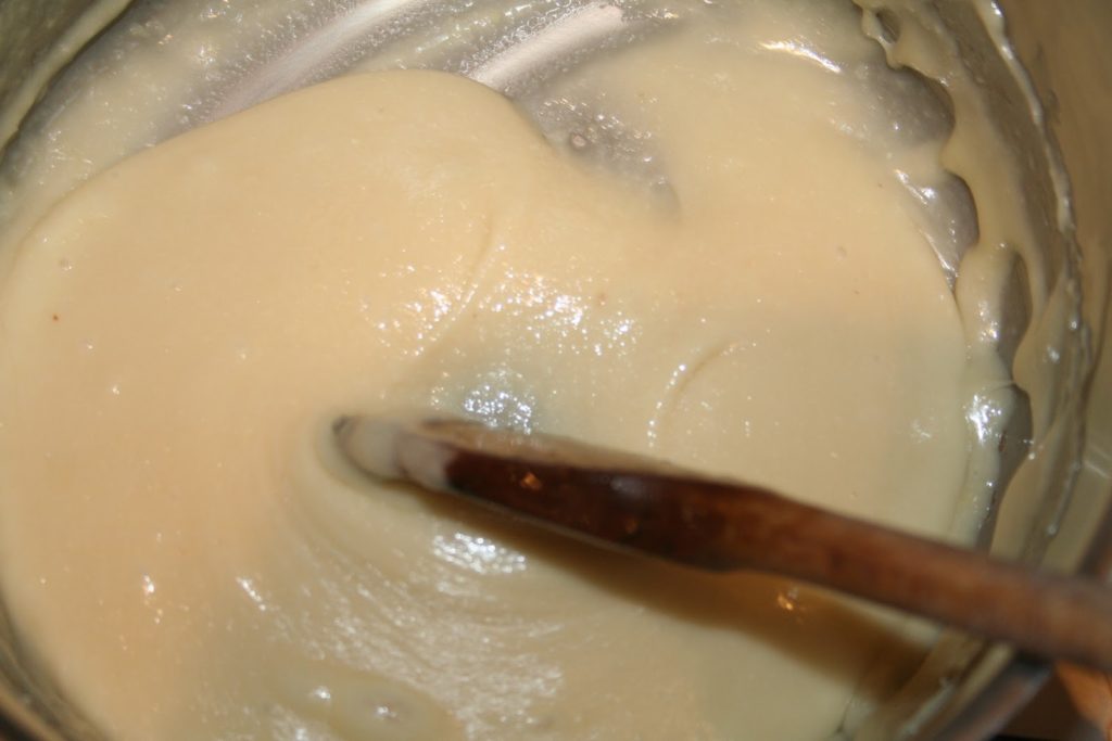 La pâte n’est pas encore prête. En refroidissant, la sucre se solidifie et la consistance est granuleuse.
