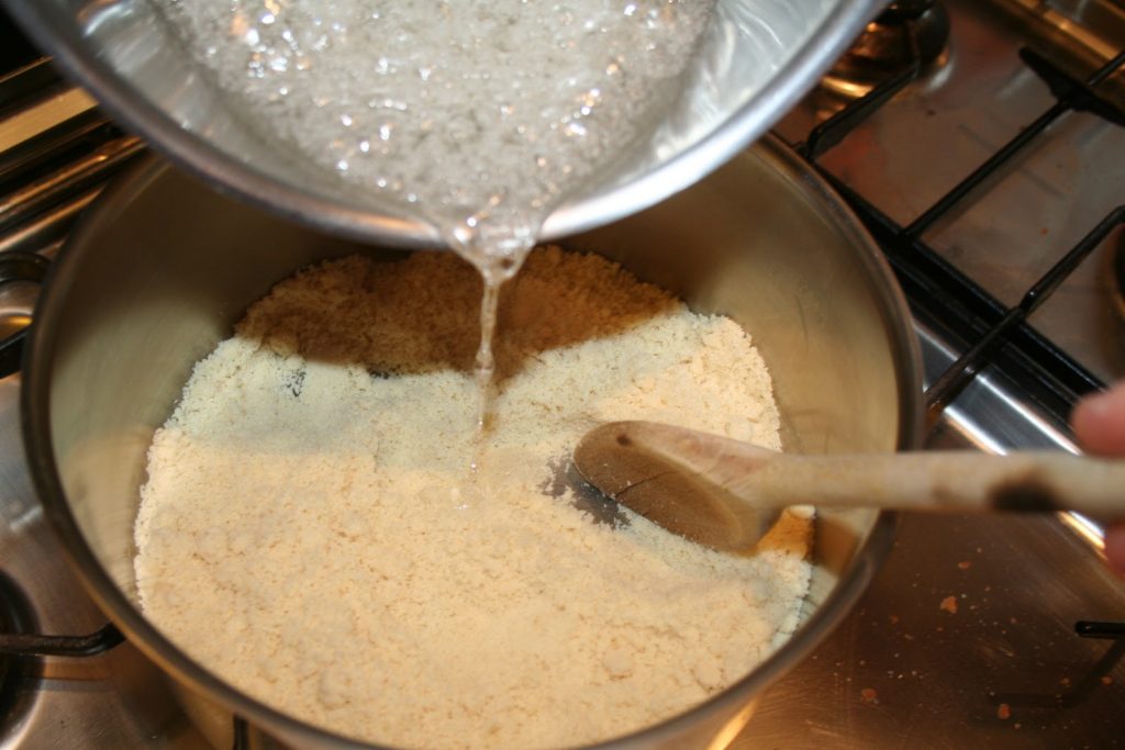 - Verser le sirop sur la poudre d’amande.