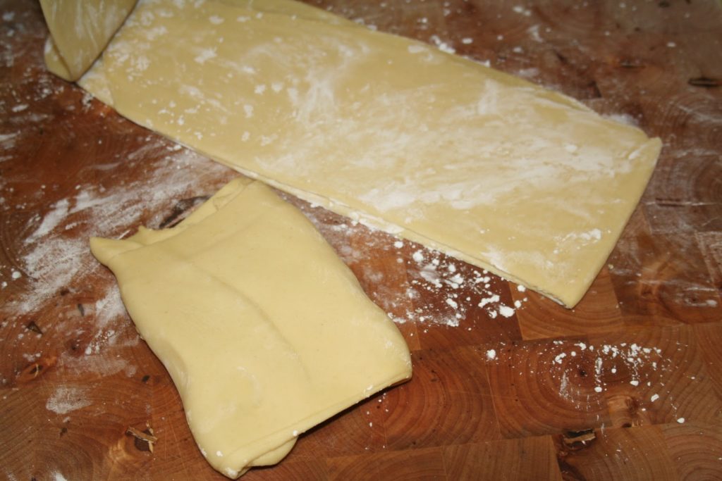 Puis refermer en rabattant les côtés vers le centre et sceller avec un point d’eau. Sur la photo le ravioli a été tourné vers l’appareil photo….