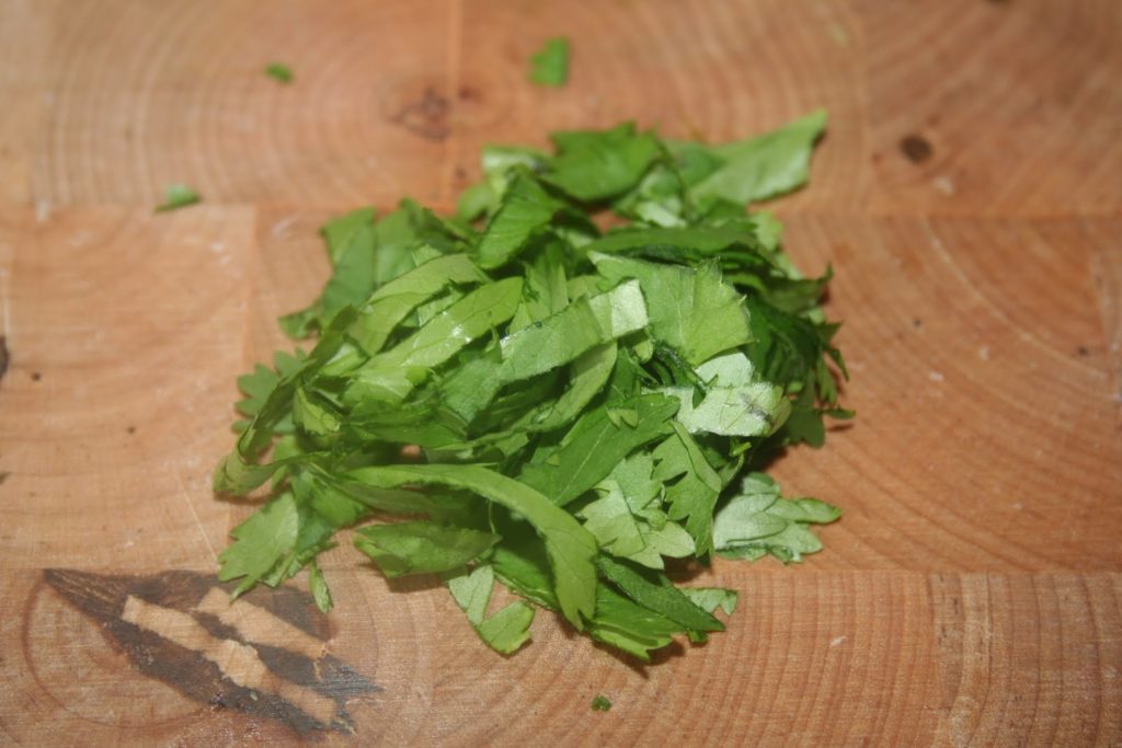 - Laver les feuilles de coriandre et les couper en lanières.