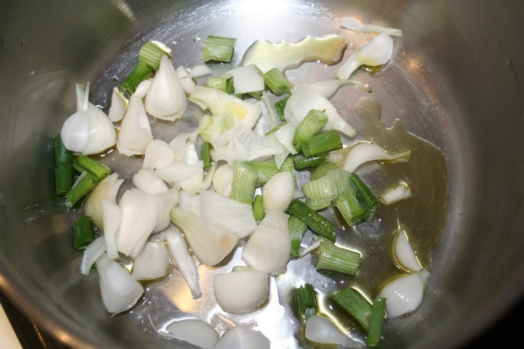 - Faire chauffer l’huile d’olive dans une casserole et faire revenir les oignons.