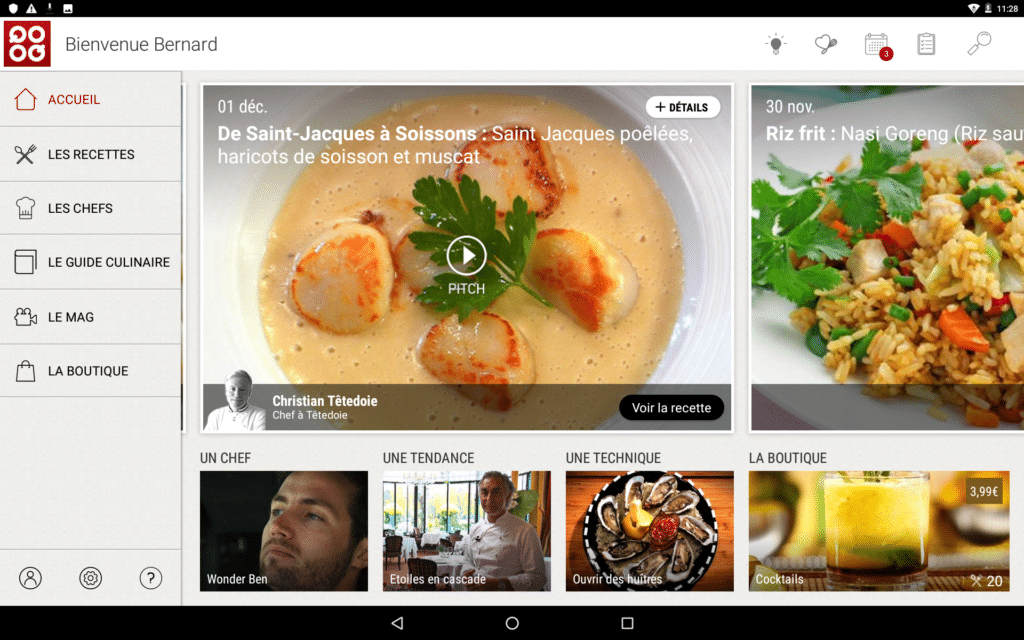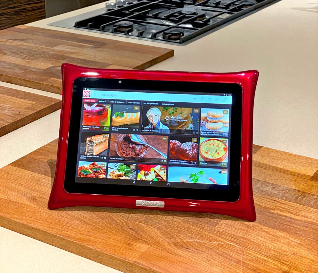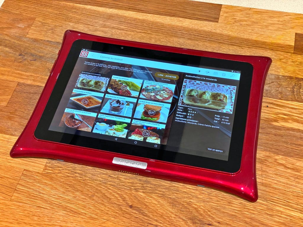 Bon, j’avoue, j’ai été quand même bluffé, car les concepteurs ont littéralement pensé à tout et ont devancé tous les besoins que nous pourrions avoir avec un tel objet connecté. Il s’agit d’une tablette android, avec un écran full HD. Du coup les photos sont claires et les vidéos très agréables à suivre. Car c’est un peu comme un livre de recettes, mais magique, car il est pleinement interactif pour des fous de cuisine, comme nous tous ici ! Vous pouvez le glisser n’importe où, même en voyage et vous aurez à disposition tout ce que vous souhaitez. Bon ne m’oubliez quand même pas !! De toute façon, vous pouvez bien sûr également aller sur internet et surfer sur mon blog par exemple ! Donc ouf, je garde encore le contact avec vous. Et puis qui sait? Peut-être que moi aussi je proposerais un jour des recettes sur la tablette…