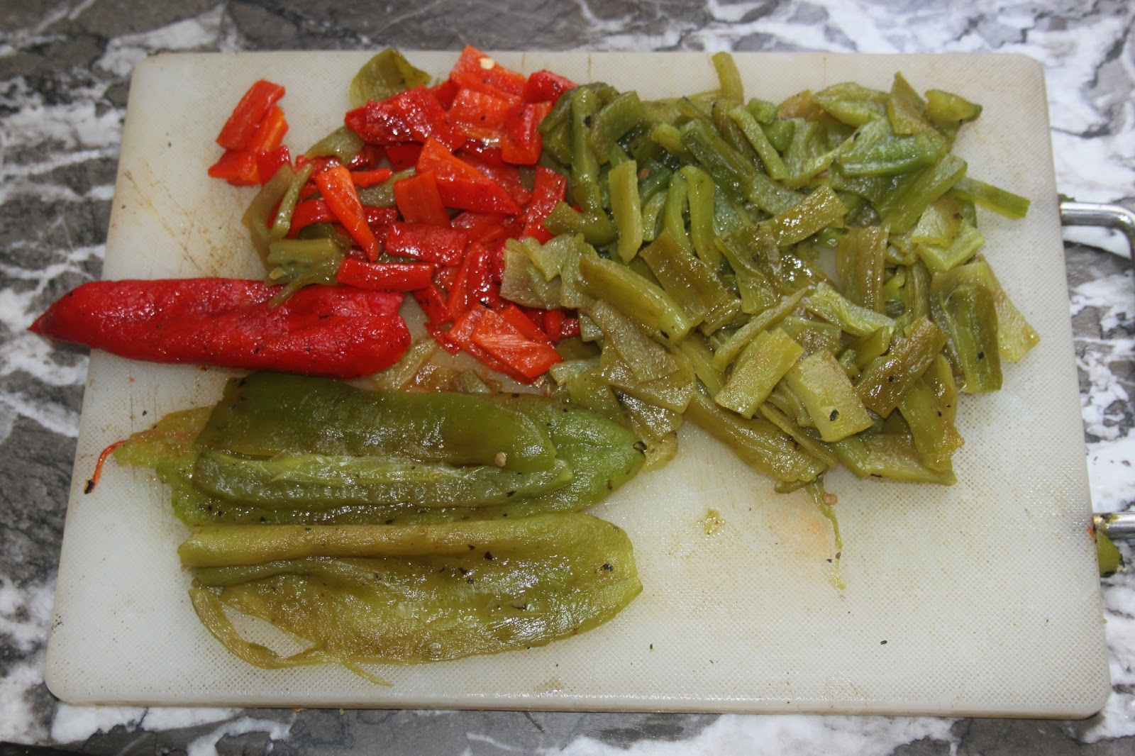- Couper les poivrons en petits morceaux. Peu importe la taille en fait !