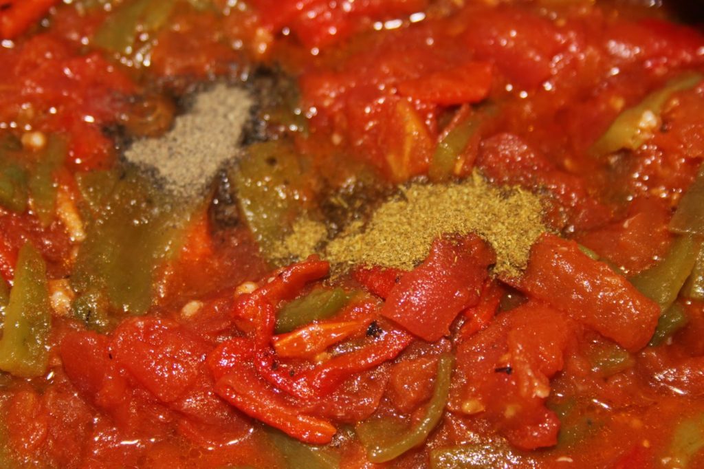 - Ajouter les épices: poivre blanc, cumin, le piment fort, ainsi que le sel.