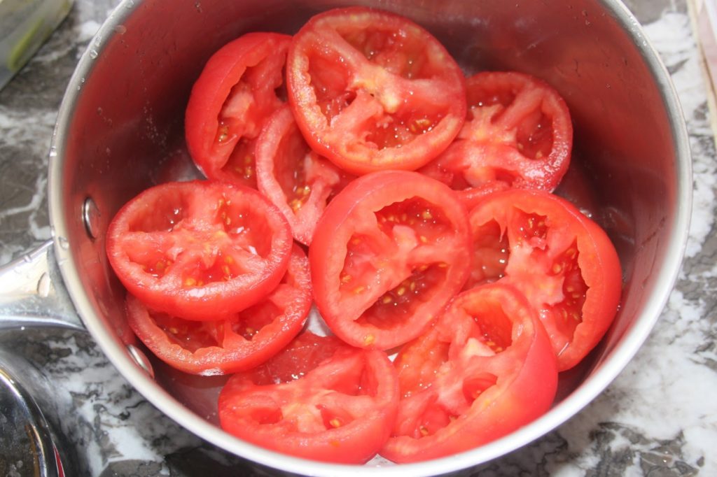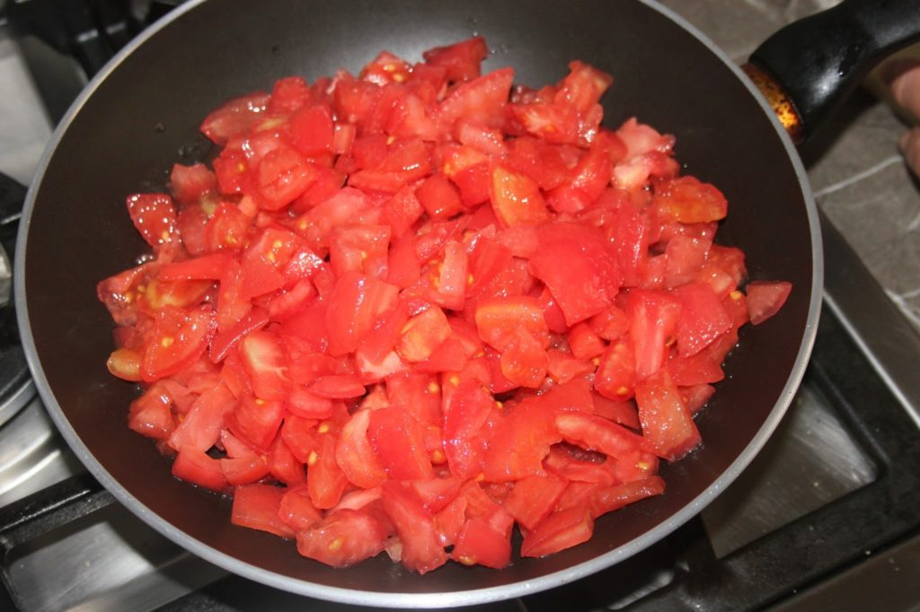 - Couper les tomates en morceaux puis les mettre dans la poêle chaude sans huile ! C’est en omettant l’huile dans un premier temps que l’on va permettre aux tomates de s’assécher réellement.