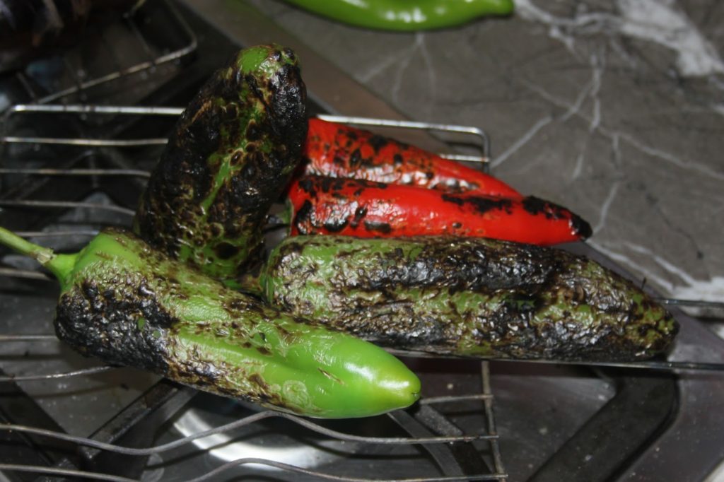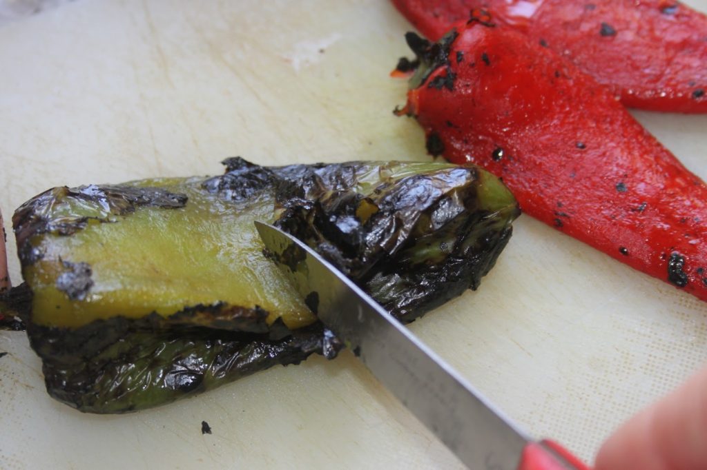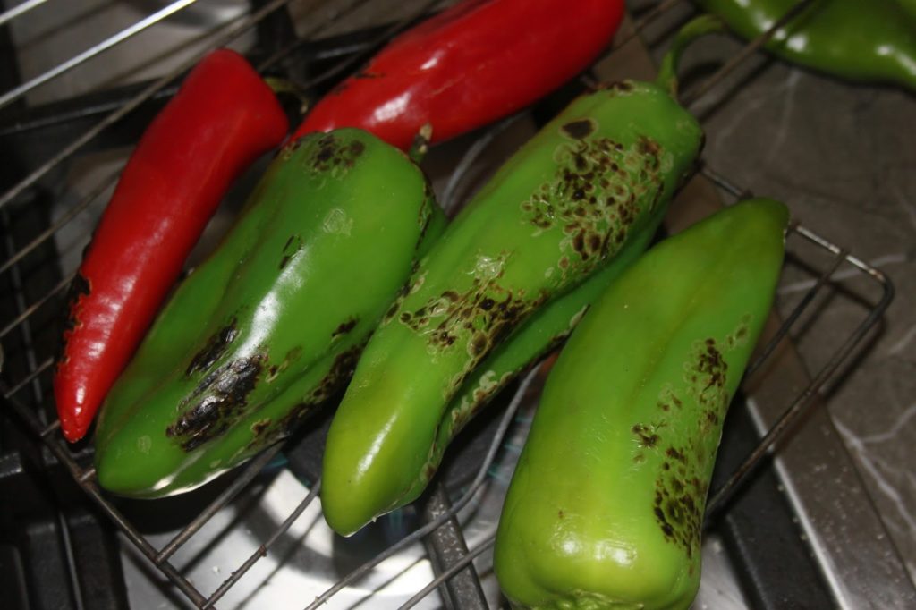 Si l’on a du gaz, c’est mieux, cela prendre un petit goût fumé inimitable. On peut aussi mettre les poivrons sur un petit gaz de camping. Et dernière solution: le four avec le grill. Sur le gaz, il faudra mettre une grille pour pouvoir poser les poivrons.