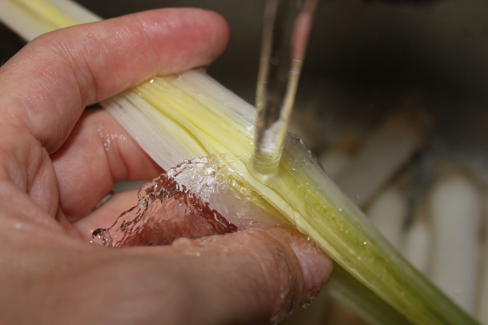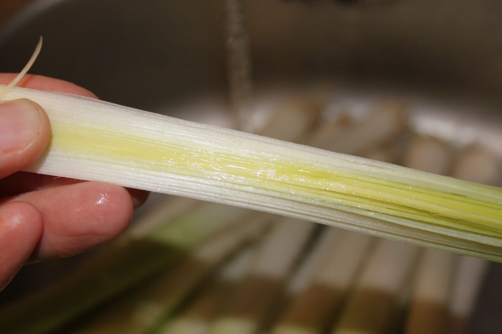 - Rincer à l’eau froide en courbant le poireau pour que l’eau pénètre bien et enlève la terre.
