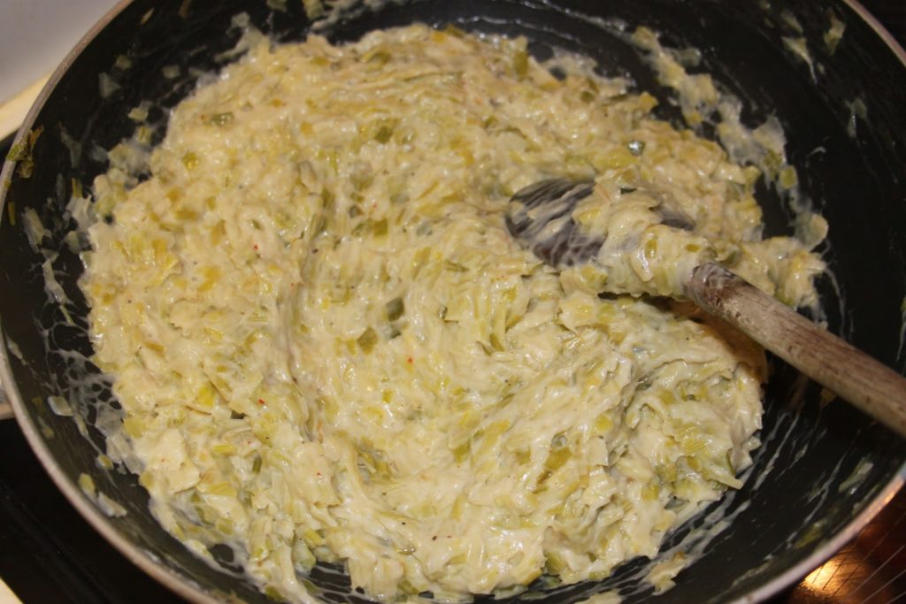 Laisser cuire toujours en remuant de temps en temps pendant une trentaine de minutes. Il faut que les poireaux soient bien cuits.