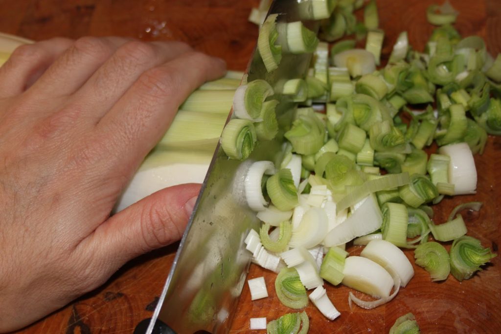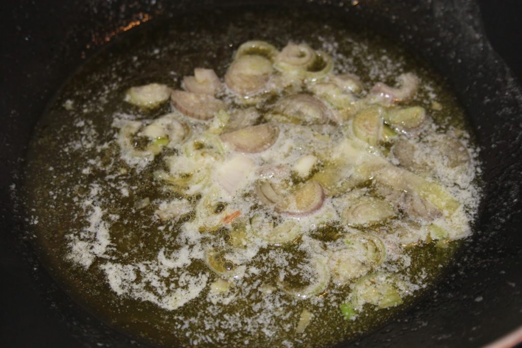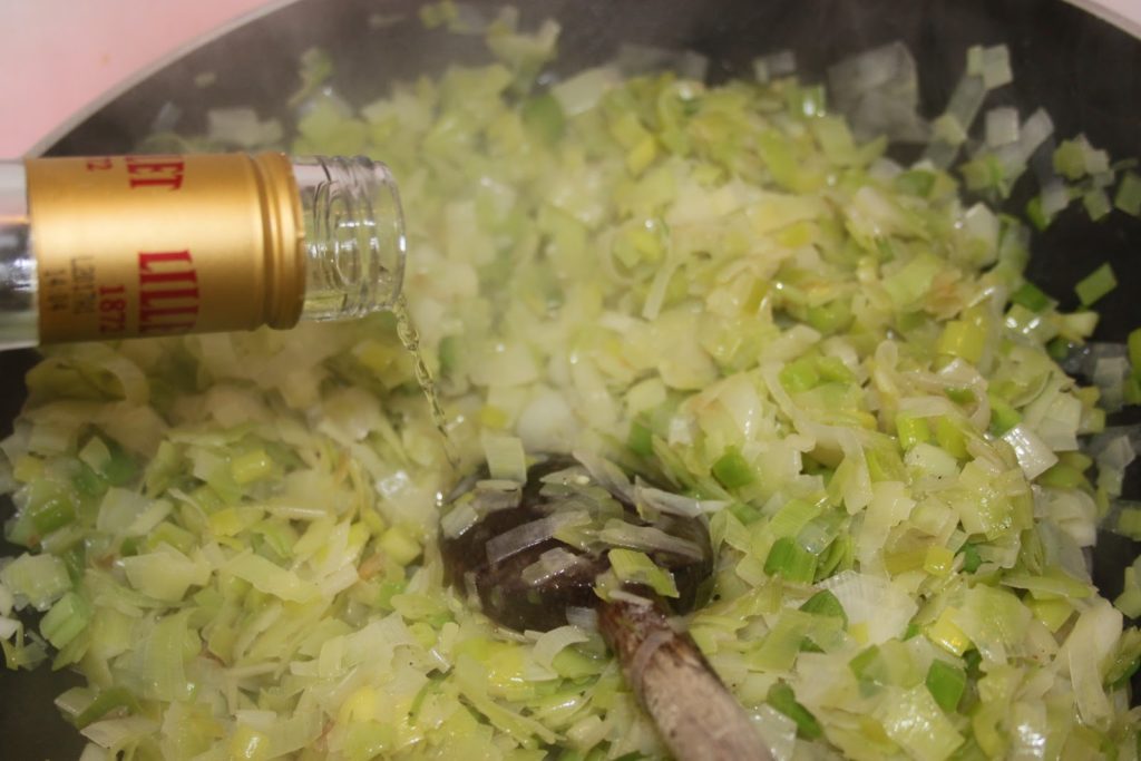 - Quand les échalotes commencent à se colorer, ajouter les poireaux.