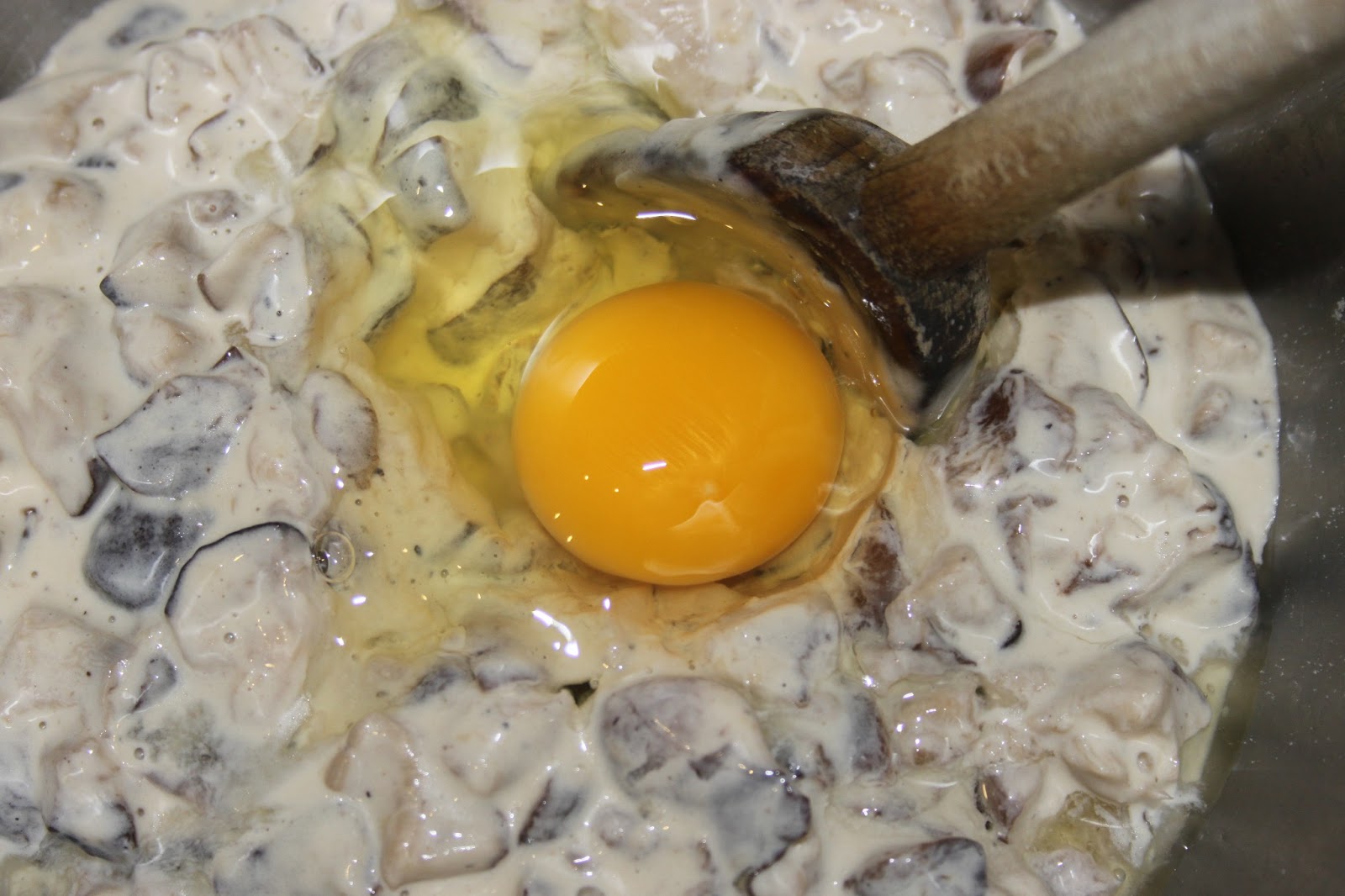 - Quand la crème est tiède, ajouter l’œuf et bien mélanger.