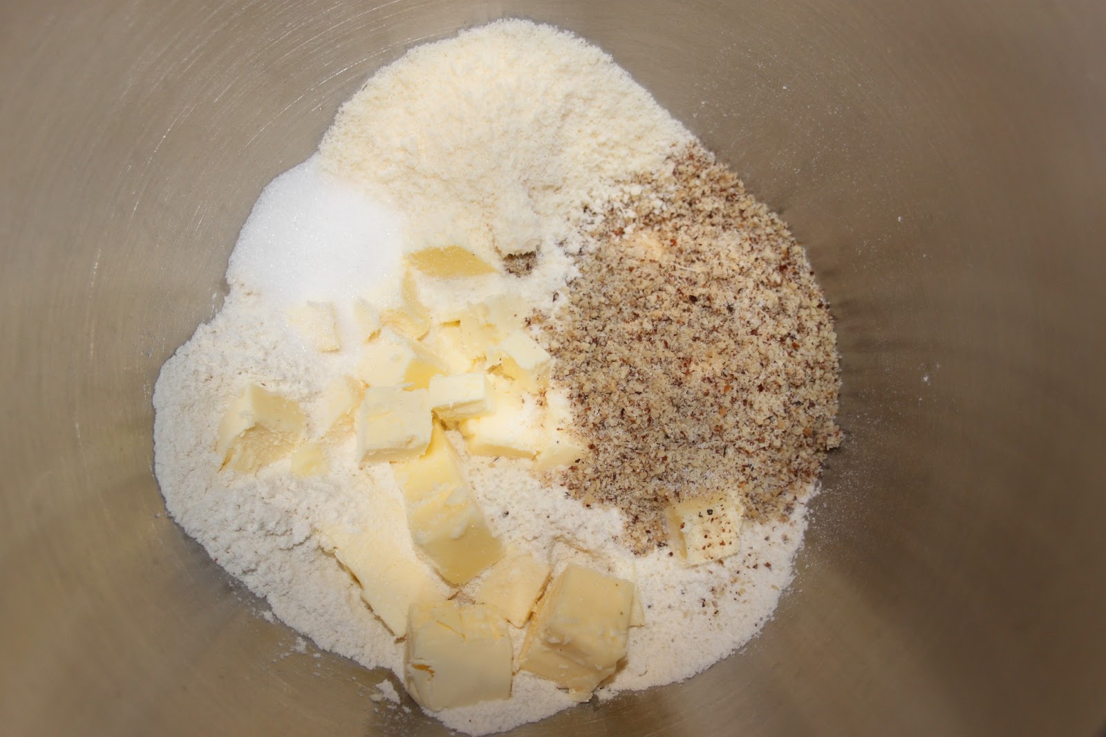 - Bien sabler le tout avec le « k » du robot ou à la main. Ajouter l’œuf battu. Le mélange reste sableux, ajouter alors de l’eau froide en très petite quantité et en filet (tout en mélangeant) jusqu’à obtenir une pâte.