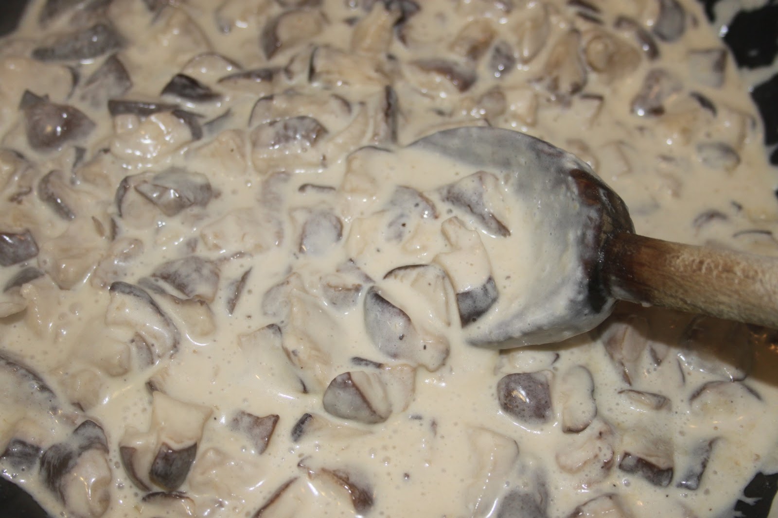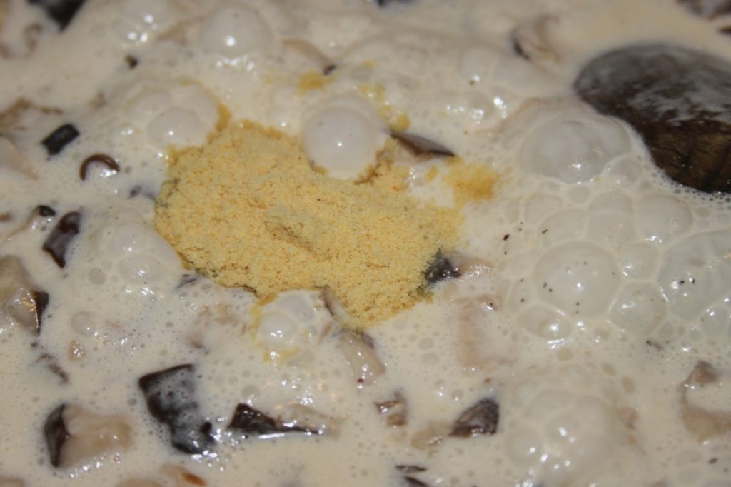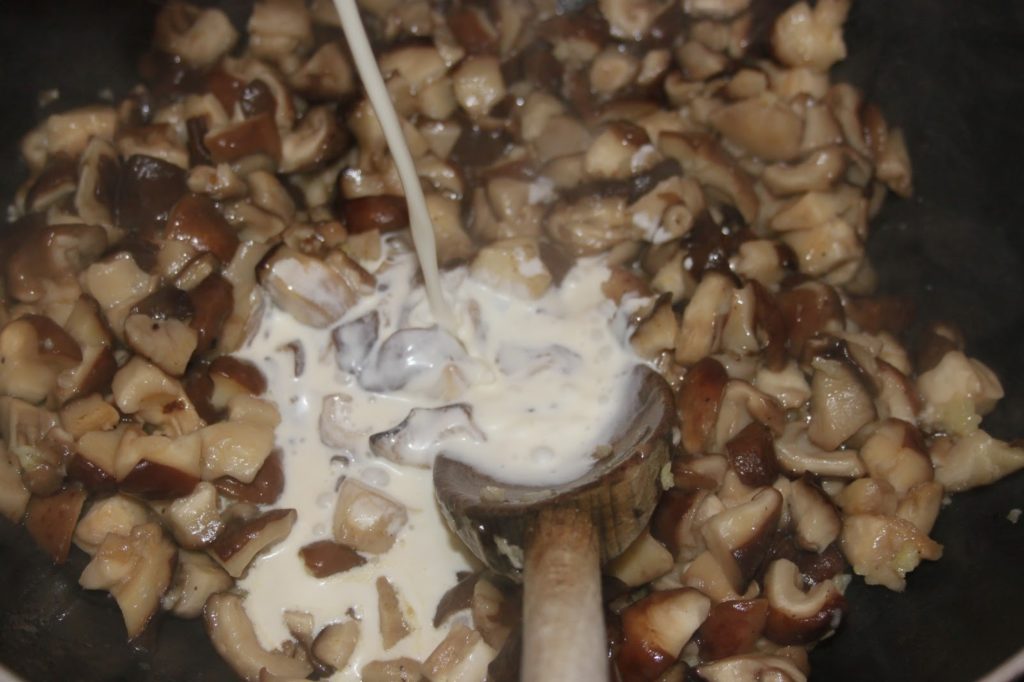 Inspirer profondément pour avoir toutes les effluves des shiitakés, de l’ail et de la crème.