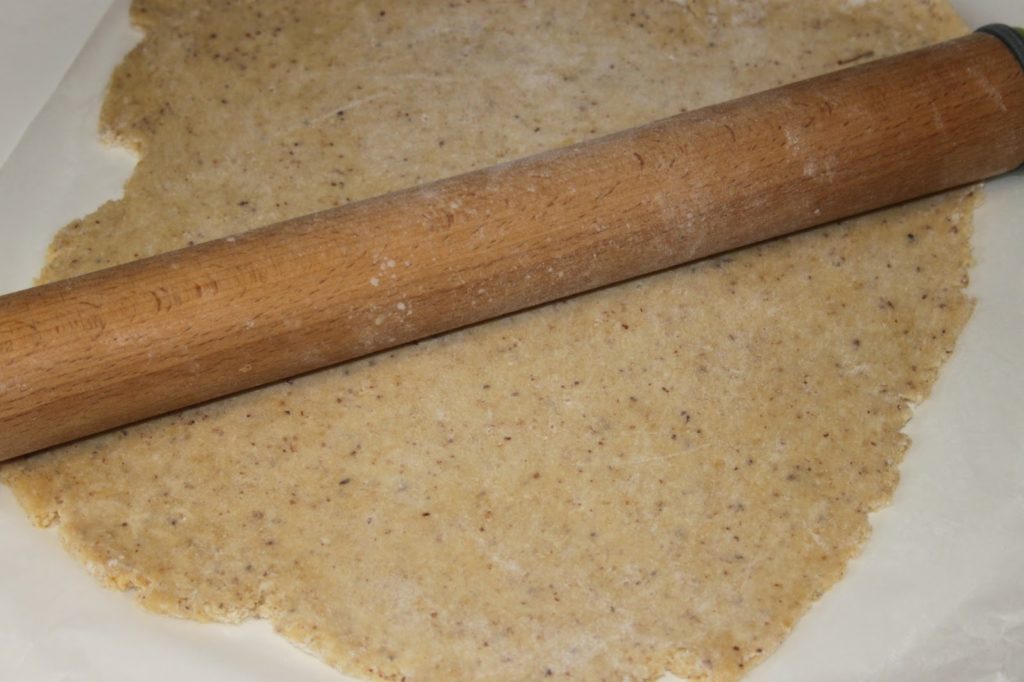 Étaler la pâte sur un papier sulfurisé (pour éviter d’en mettre partout et surtout pour faciliter la manipulation).