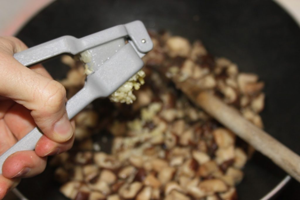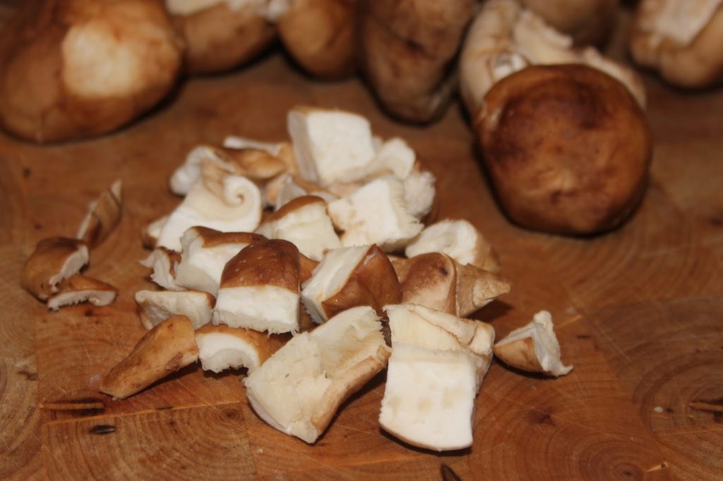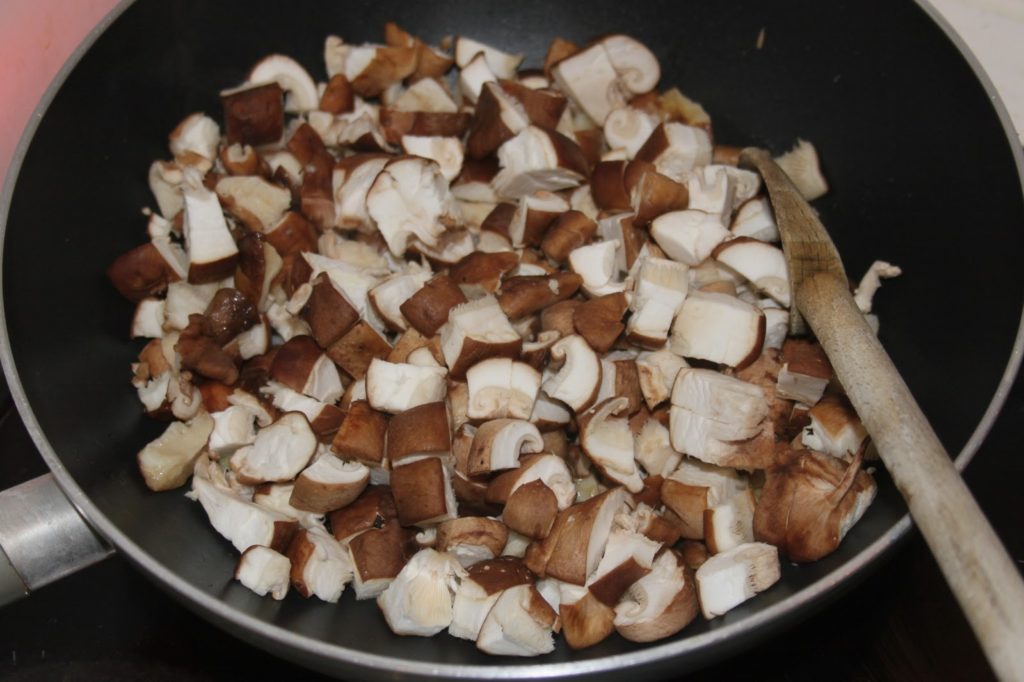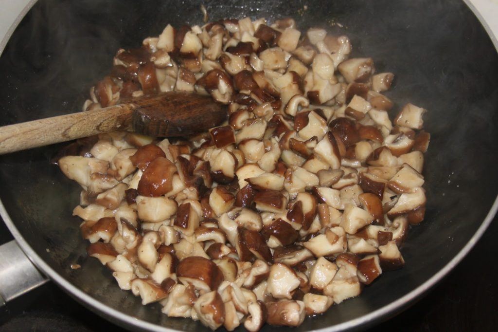 - Couper les shiitakés en morceaux, peu importe si c’est bien fait ou non.