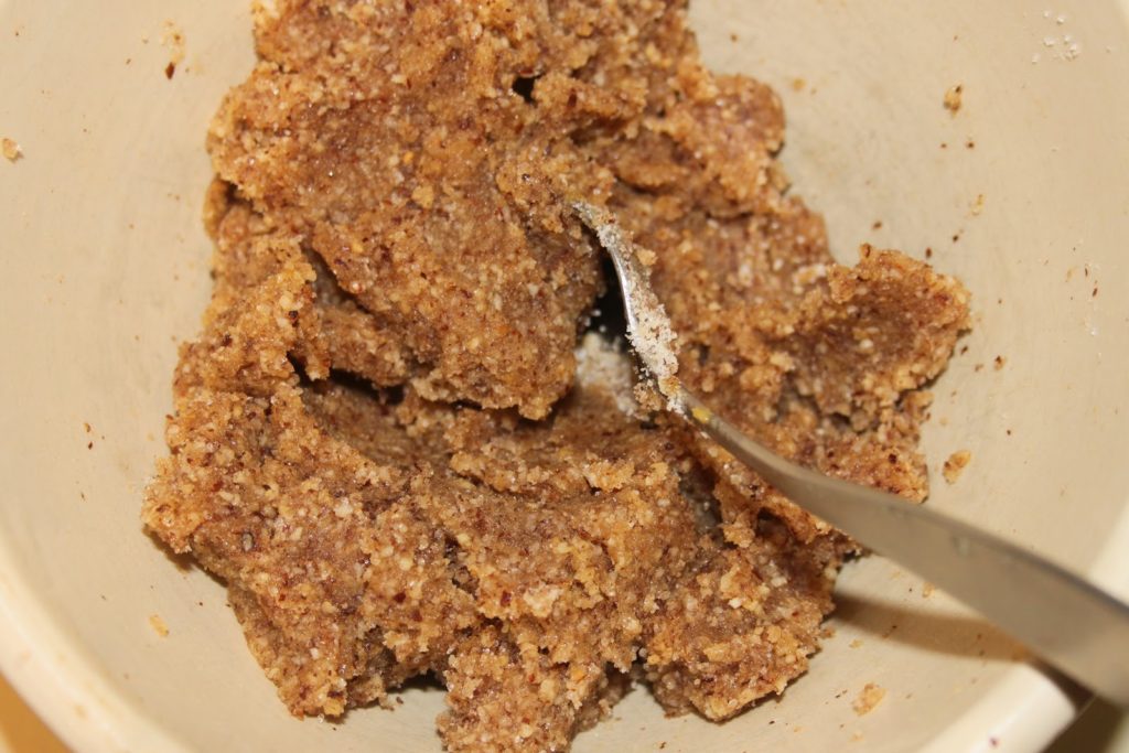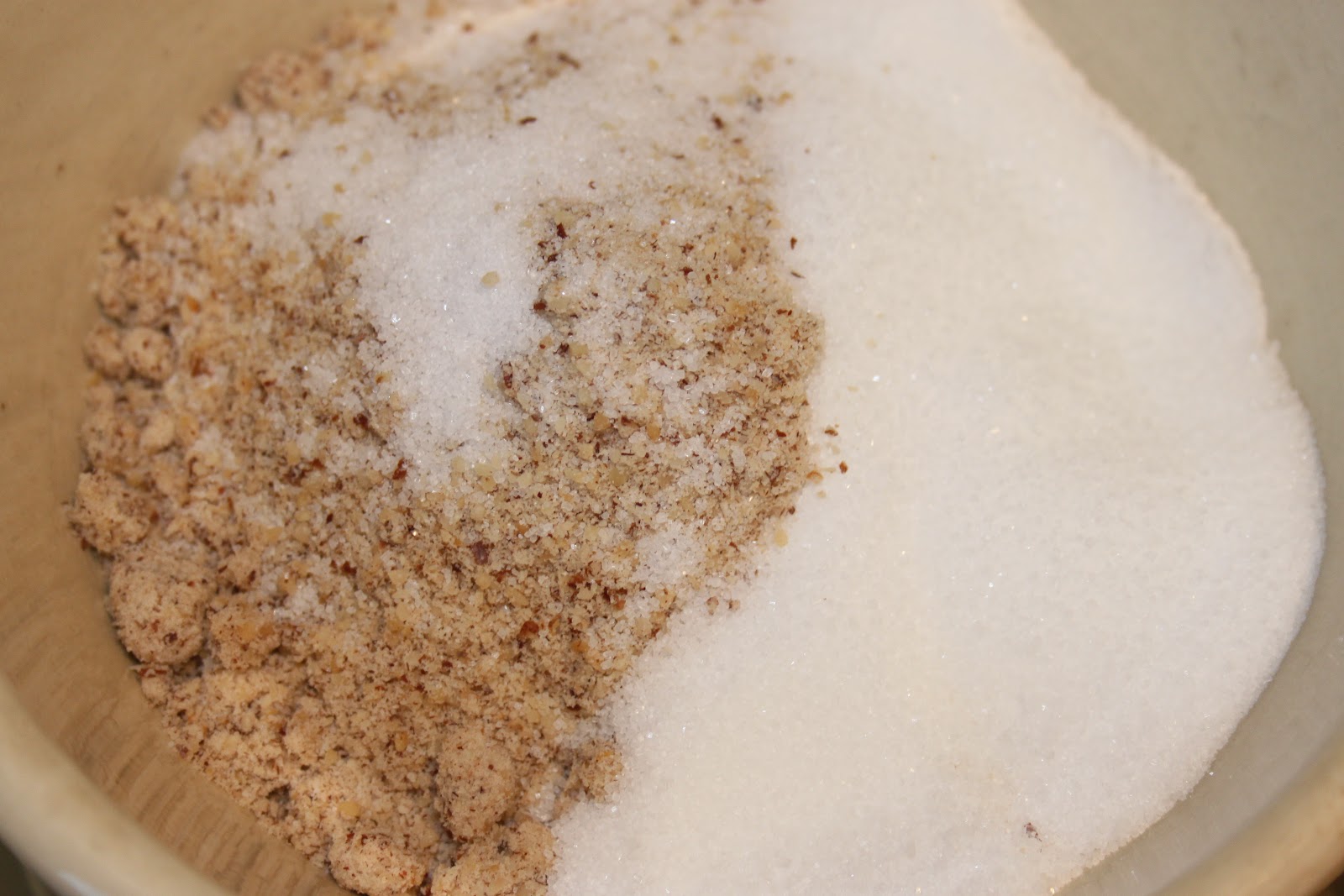 - Mettre dans un bol, la poudre de noisettes et le sucre.