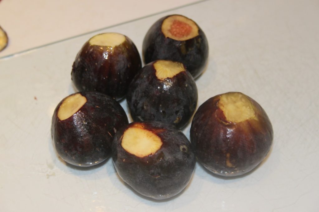 - Couper les figues en morceaux. Je coupe chaque quartier en trois.