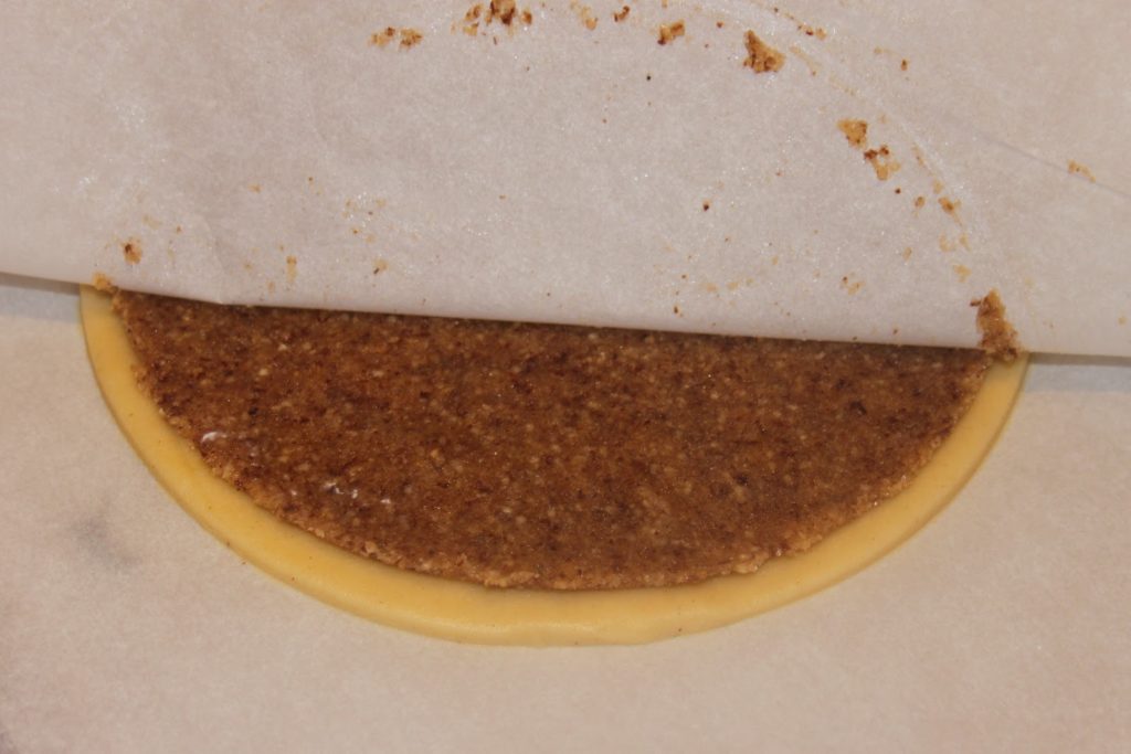 On obtient un cercle parfait de pâte avec un beau disque de pâte de noisettes. Facile!