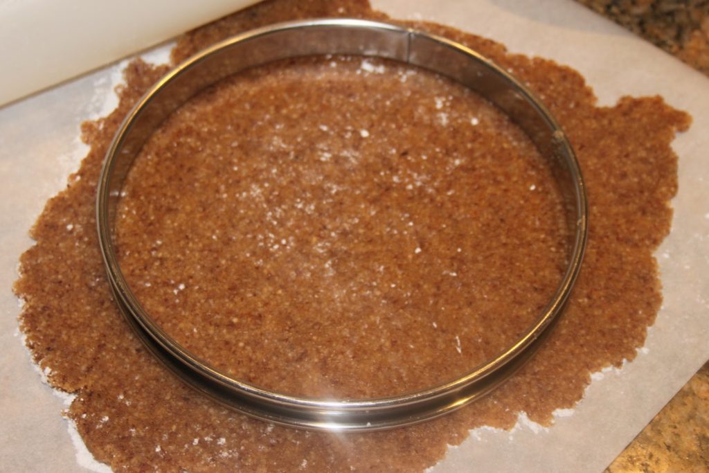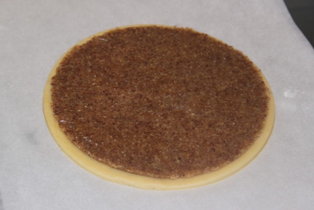 - On obtient un cercle parfait de pâte avec un beau disque de pâte de noisettes. Facile!