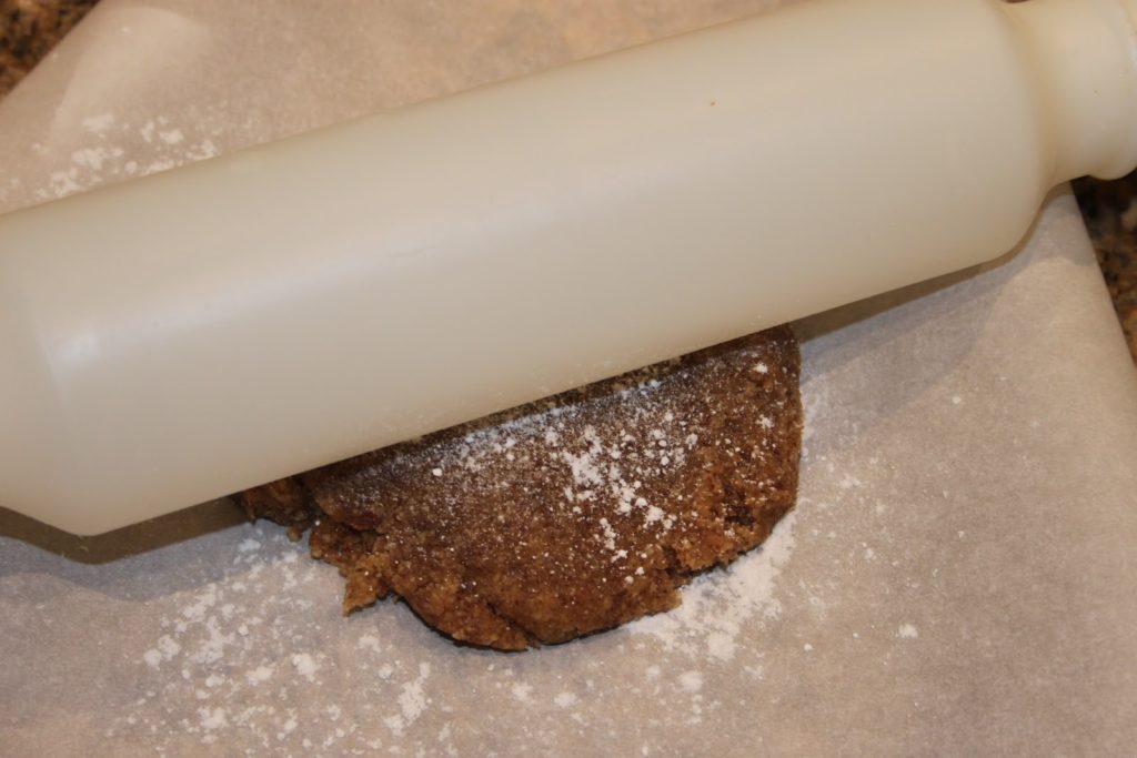 - Mettre une boule de pâte sur un papier sulfurisé et mettre une deuxième feuille de papier sur celle-ci. Étaler avec le rouleau sans ajout de farine, tout reste propre!!