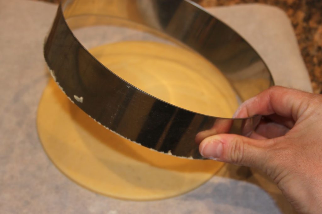 - Étaler finement, puis couper avec un cercle de 16cm.