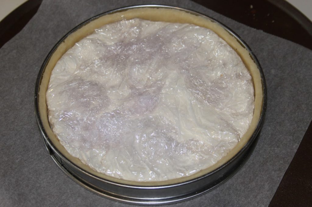 - Cuire la pâte à blanc avec la méthode que l’on préfère. Ici, la méthode du sac de farine… Voir les recettes de tartelettes pour les explications.