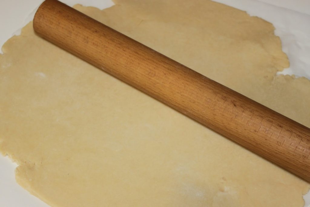 - Étalez la pâte légèrement farinée sur un papier sulfurisé sur une épaisseur de 3mm.