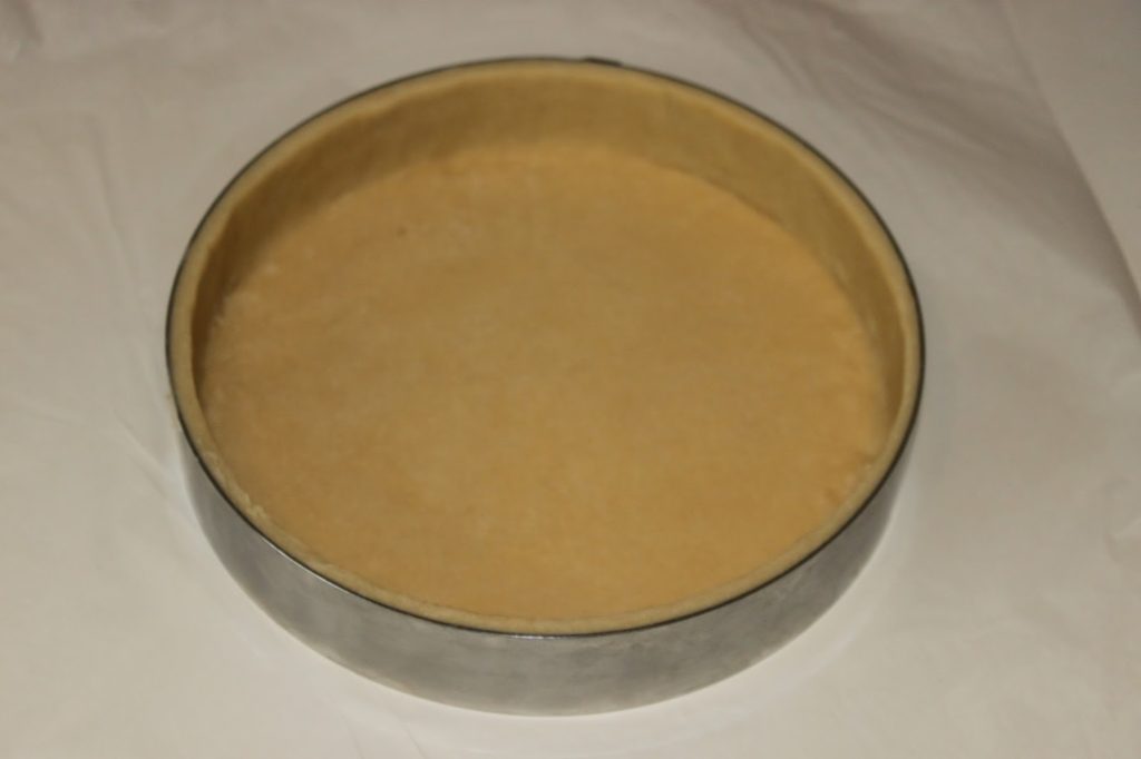 - Garnissez-en un cercle ou un moule à tarte puis coupez l’excédent.