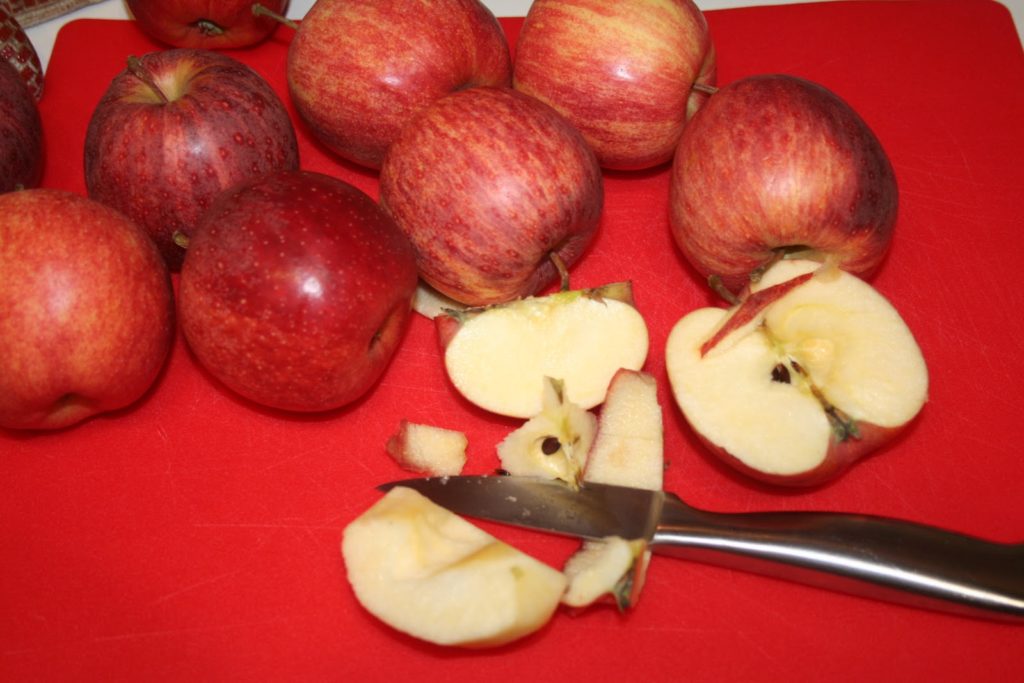 - Préparer les pommes. Les couper en quartiers et les éplucher et vider le centre.