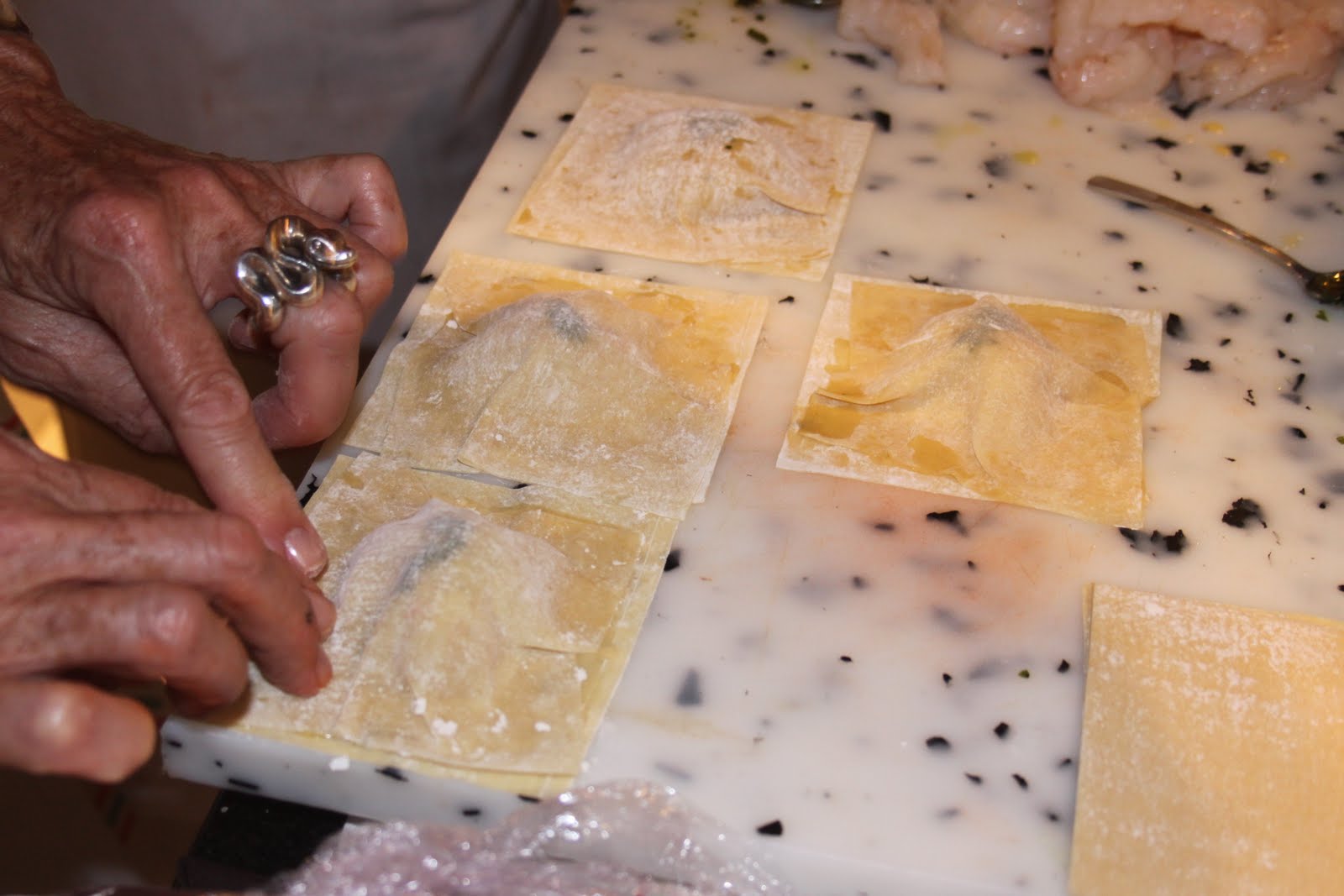 Mais bien sûr, elle a ajouté sa touche personnelle et secrète! Dans le milieu des ravioles, Olympe met un peu de la préparation à base d’ail des ours que sa grand mère réalise.