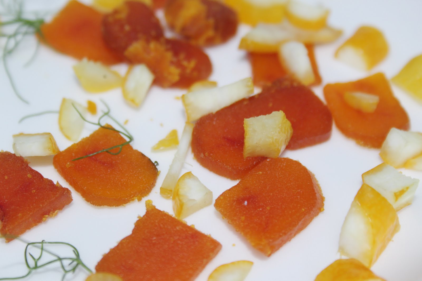 On mélange bien pour parfumer avec la poutargue et le cédrat. Et c’est là que la magie opère. Des saveurs inattendues et totalement originales mais qui se marient à la perfection!