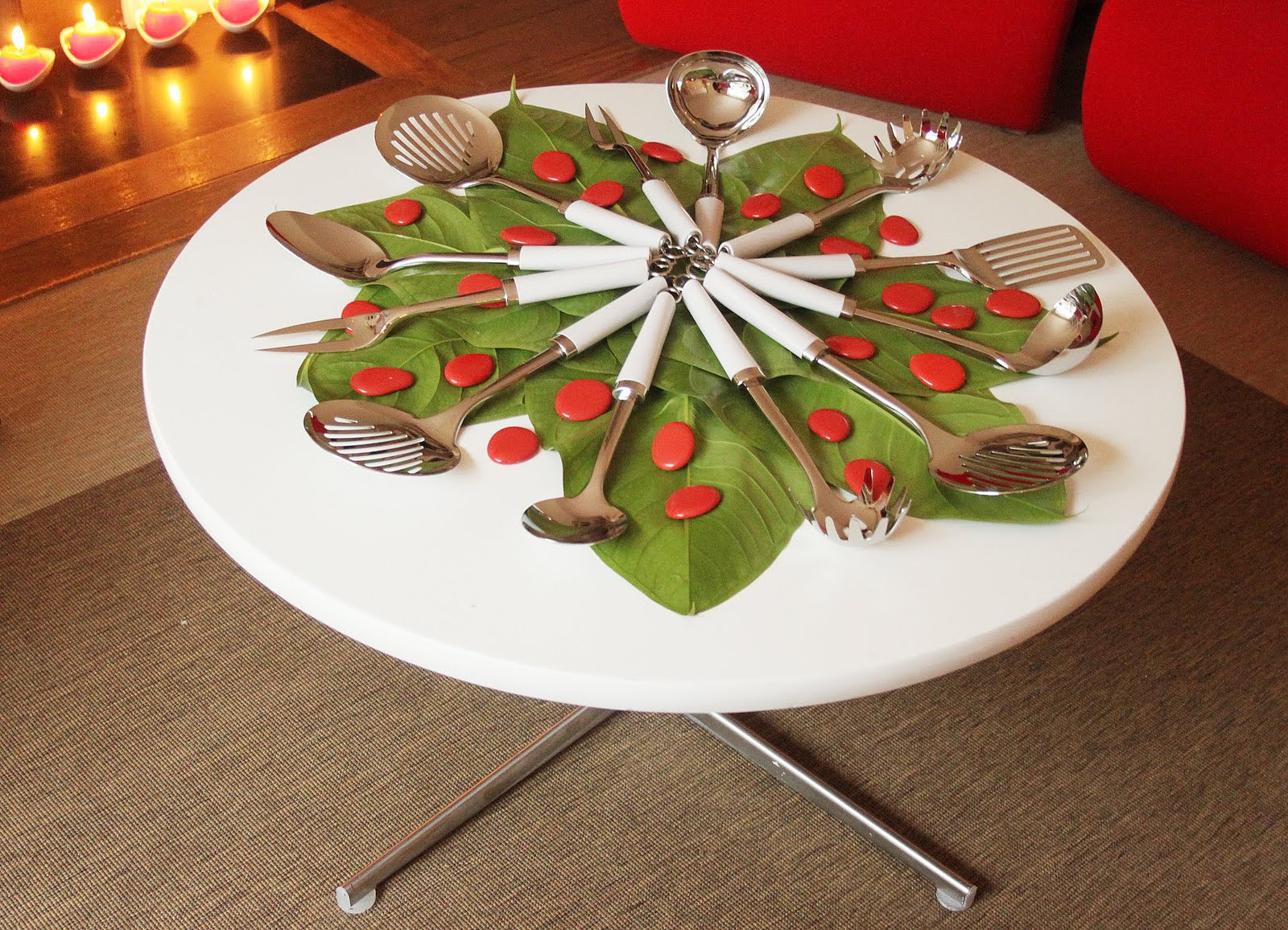 Nous avons été gâtés jusqu’au bout, avec ces couverts de service Lagostina en inox et bakélite.