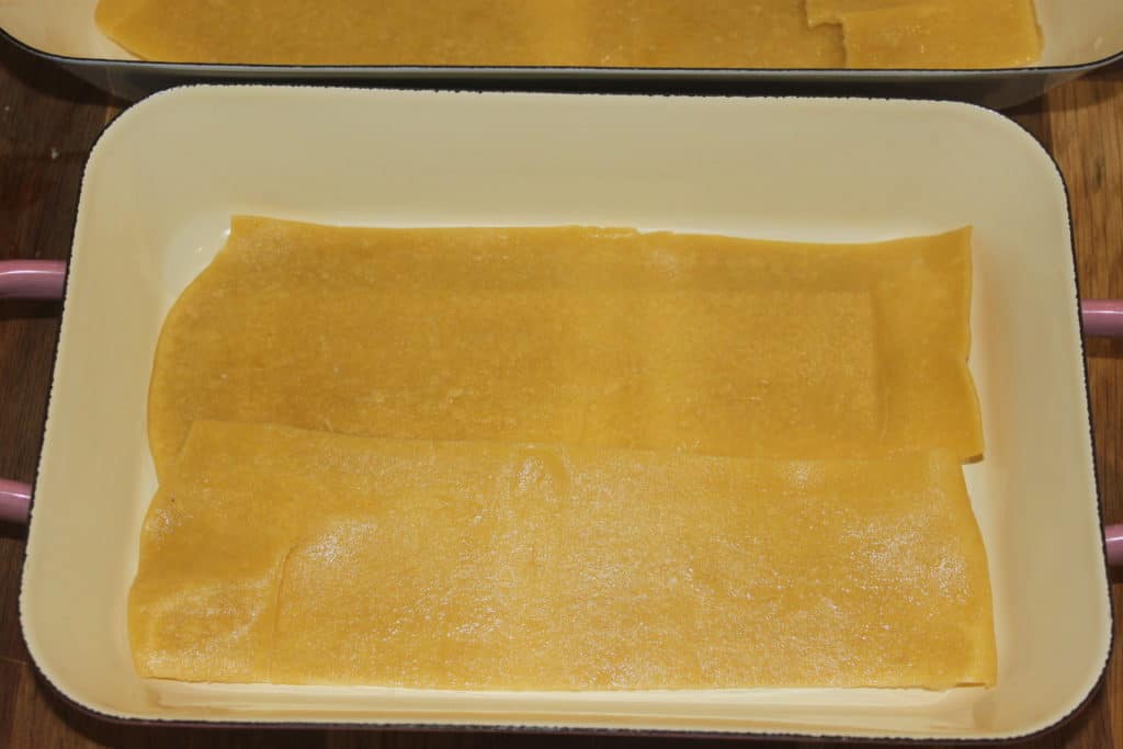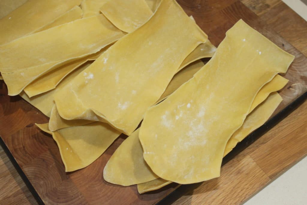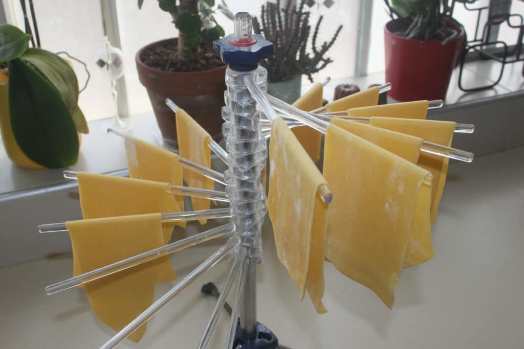 Je vais jusqu’au numéro 3 de mon laminoir. Puis je laisse sécher les lasagnes complètement.
