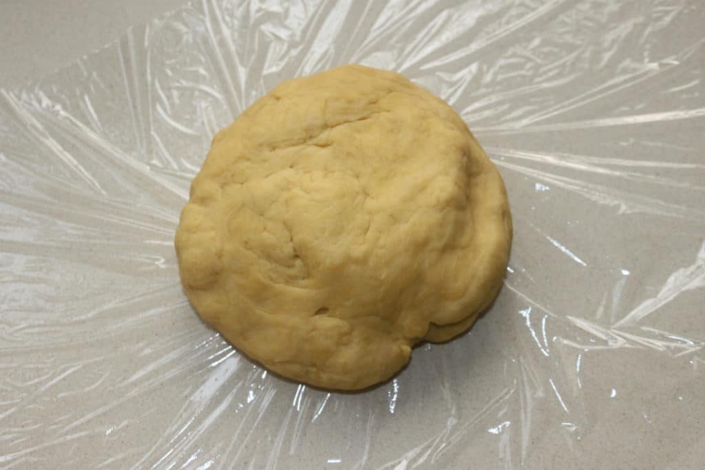 Je mets la pâte dans un film étirable puis une heure au frais avant de la laminer.