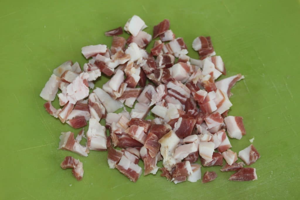 Coupez la pancetta en morceaux.