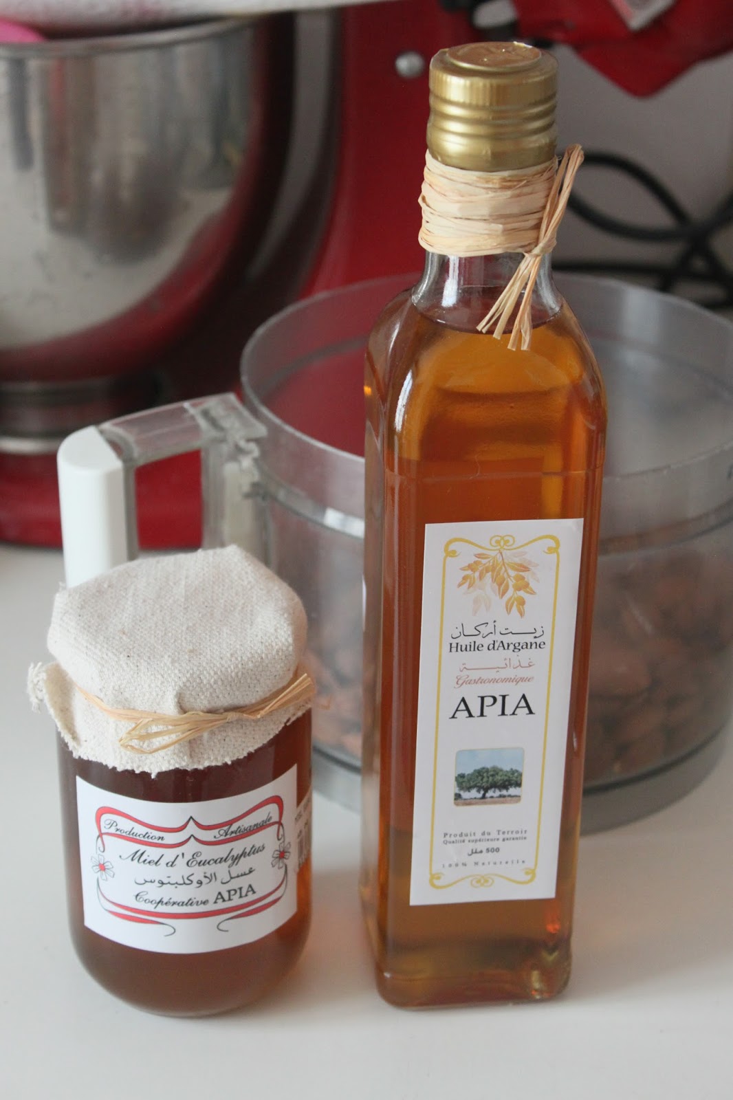 - J’ai acheté ces deux produits chez Apia à Rabat au 44, rue de l’Oukaïmeden. Une boutique bio formidable avec un large choix de miel et d’huiles. Il faut prendre l’huile d’argane alimentaire et ne pas se tromper avec celle réservée aux soins cosmétiques.