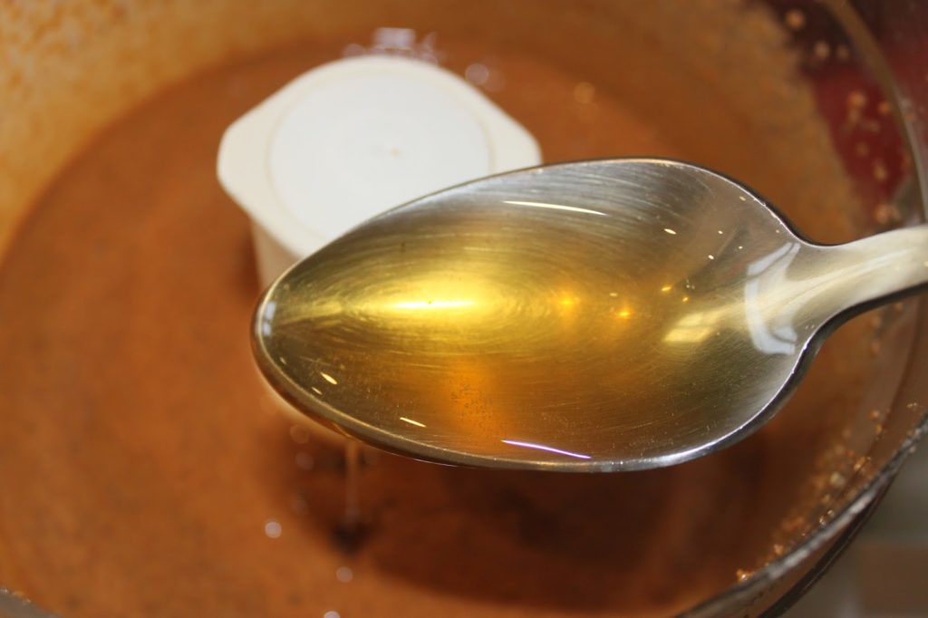- Poursuivez le broyage en ajoutant l’huile au fur et à mesure.