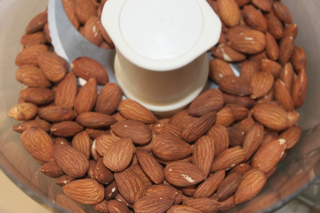 - Une fois les amandes torréfiées, laissez-les refroidir à température ambiante. Puis placez-les dans le bol de votre mixeur. Normalement cela se fait avec une pierre, mais à la maison cela n’est pas toujours très pratique !!