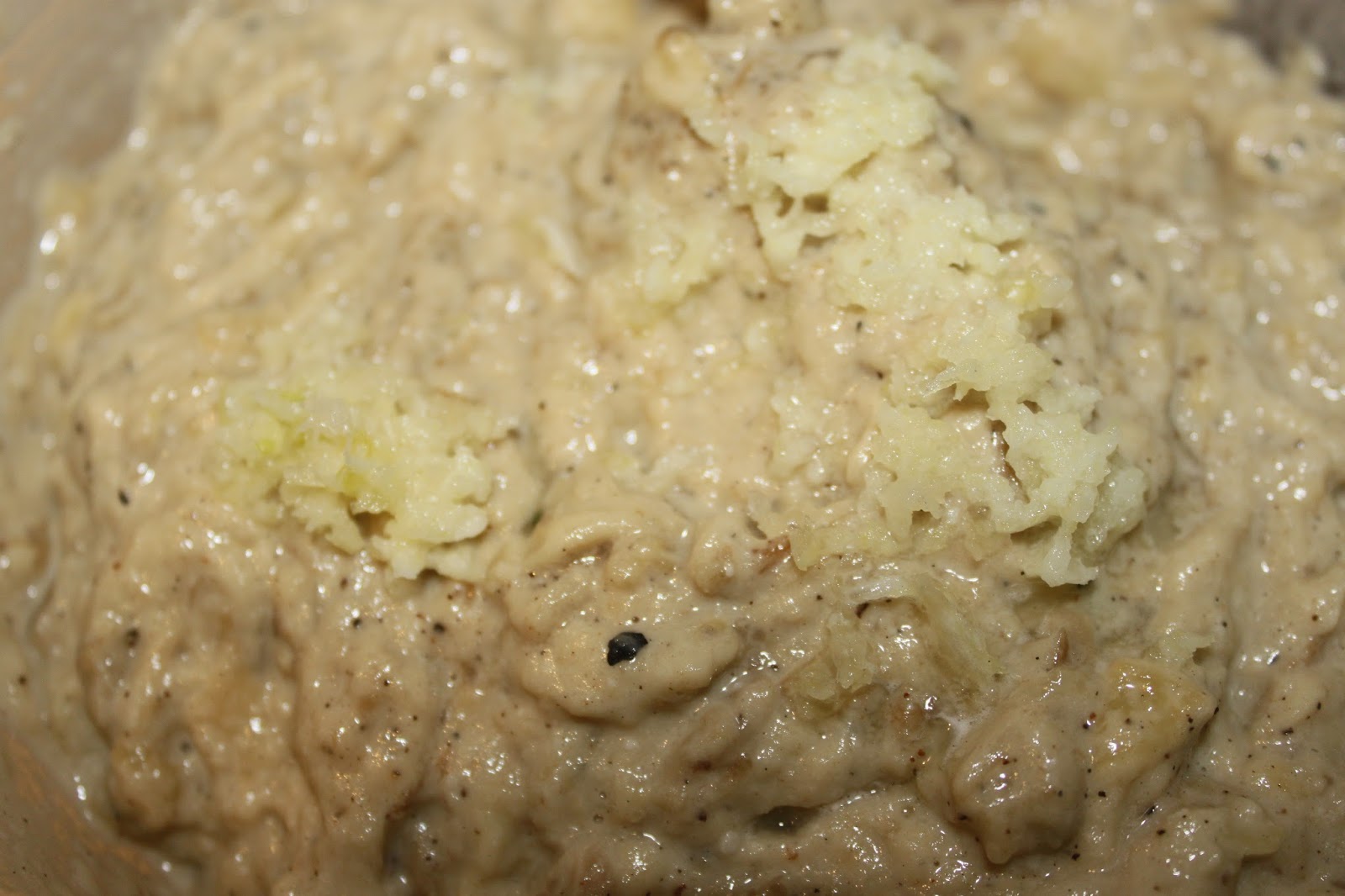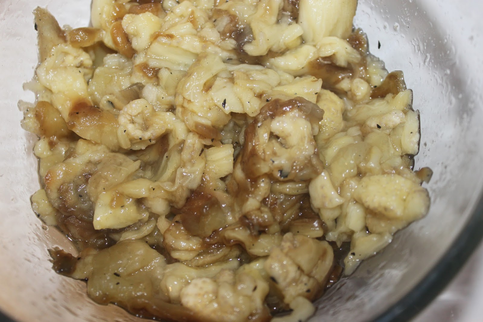 - Placez la chair dans un bol et écrasez-la à la fourchette. J’ai fait la recette alors que j’avais 720g de chair d’aubergines grillées.