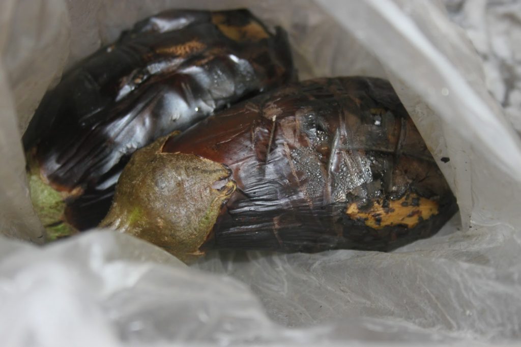 - Au fur et à mesure que les aubergines ont été grillées, placez-les dans un petit sac plastique que vous fermez dès que vous les mettez dedans. Faites de même pour toutes les aubergines.