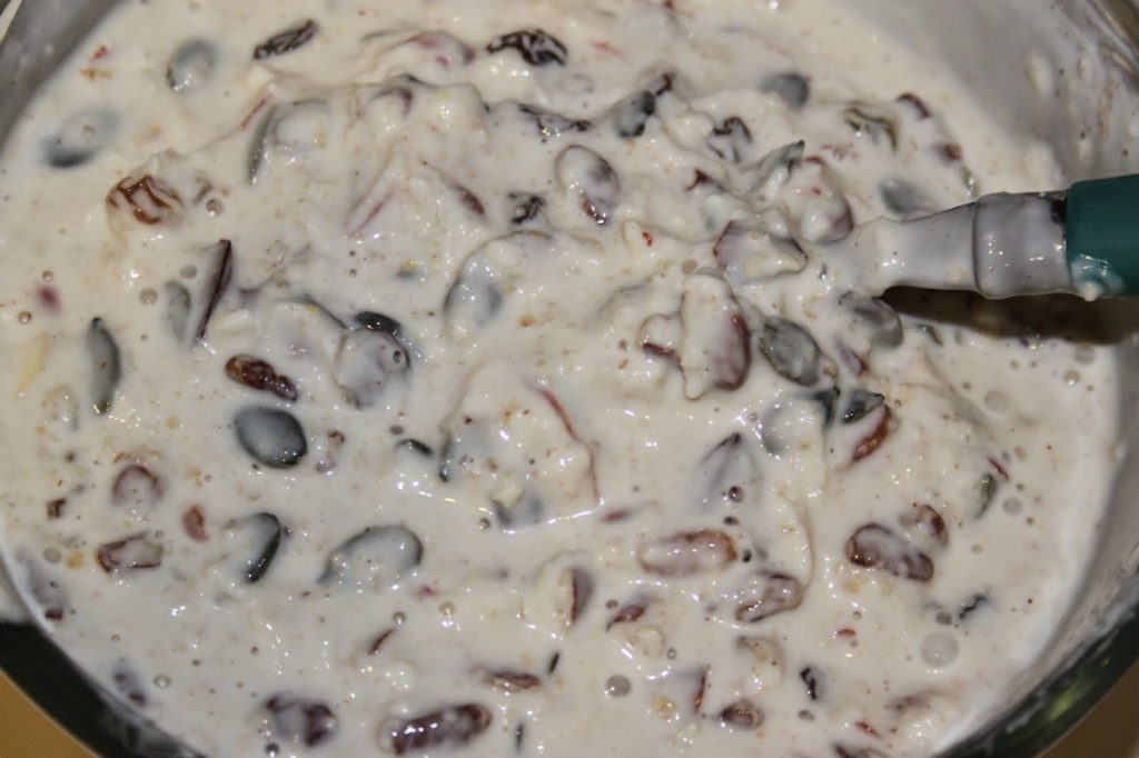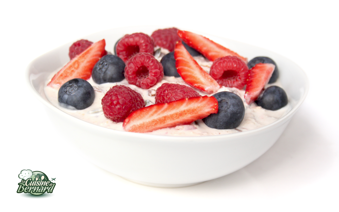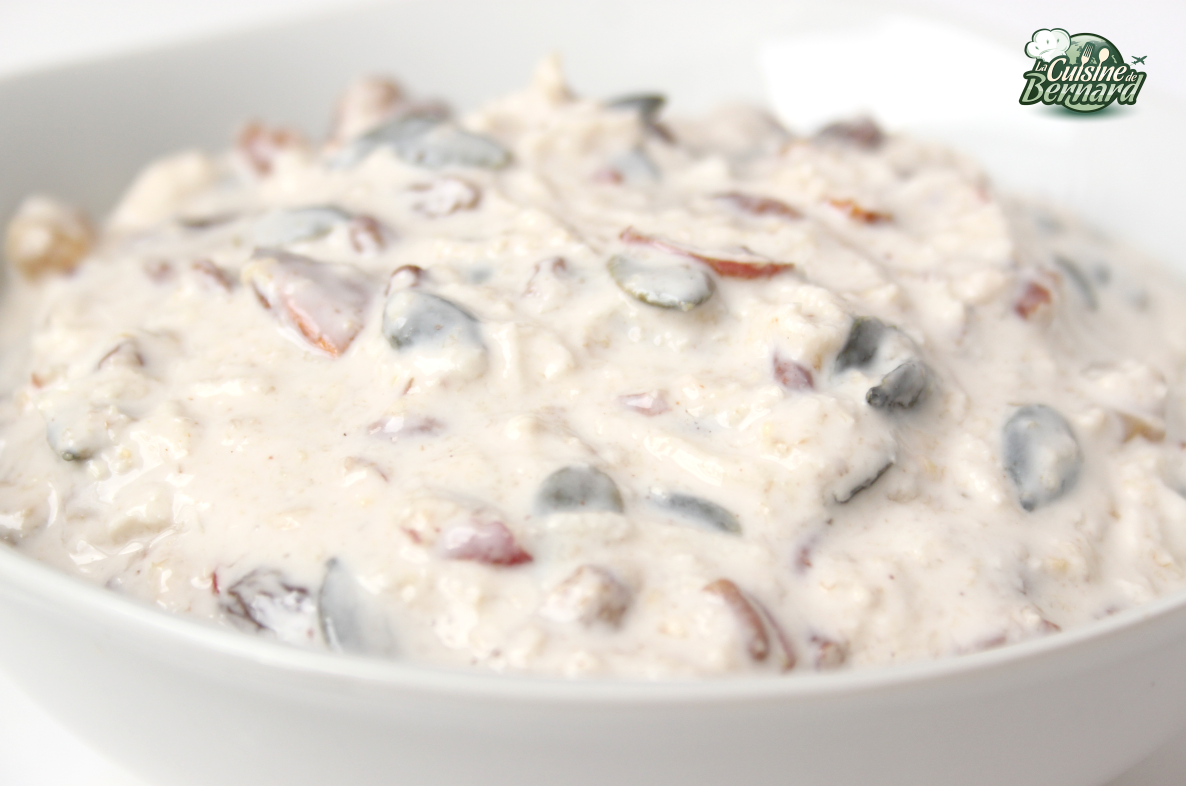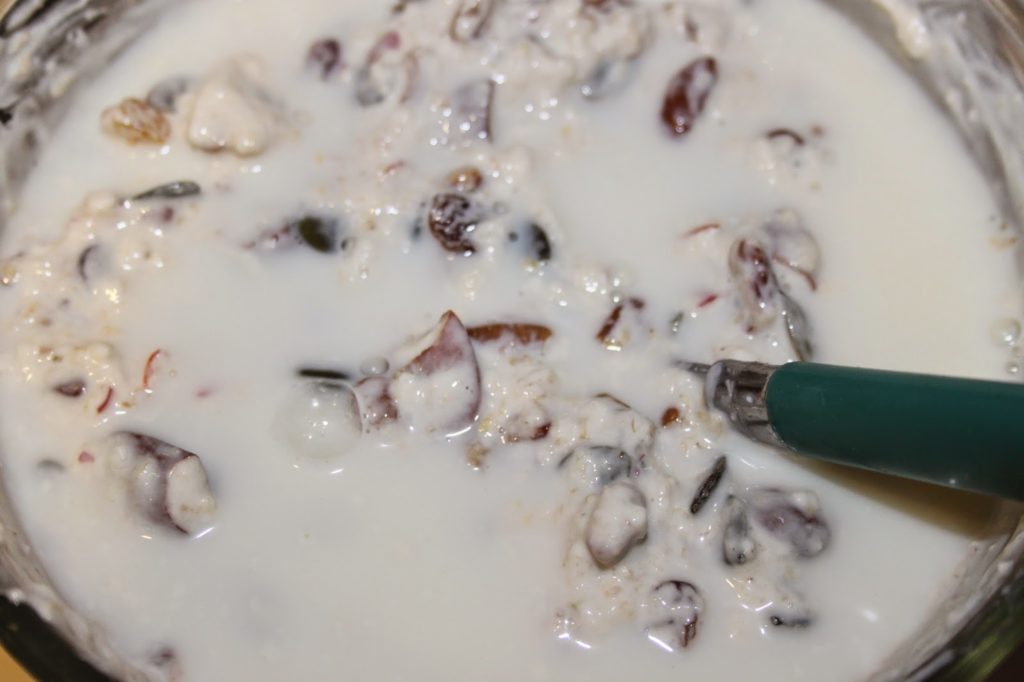 Mélangez le tout et laissez maintenant reposer… une nuit !! Ou au moins 4 heures. Mais en le préparant vite fait la veille, il sera parfait pour le petit déjeuner…